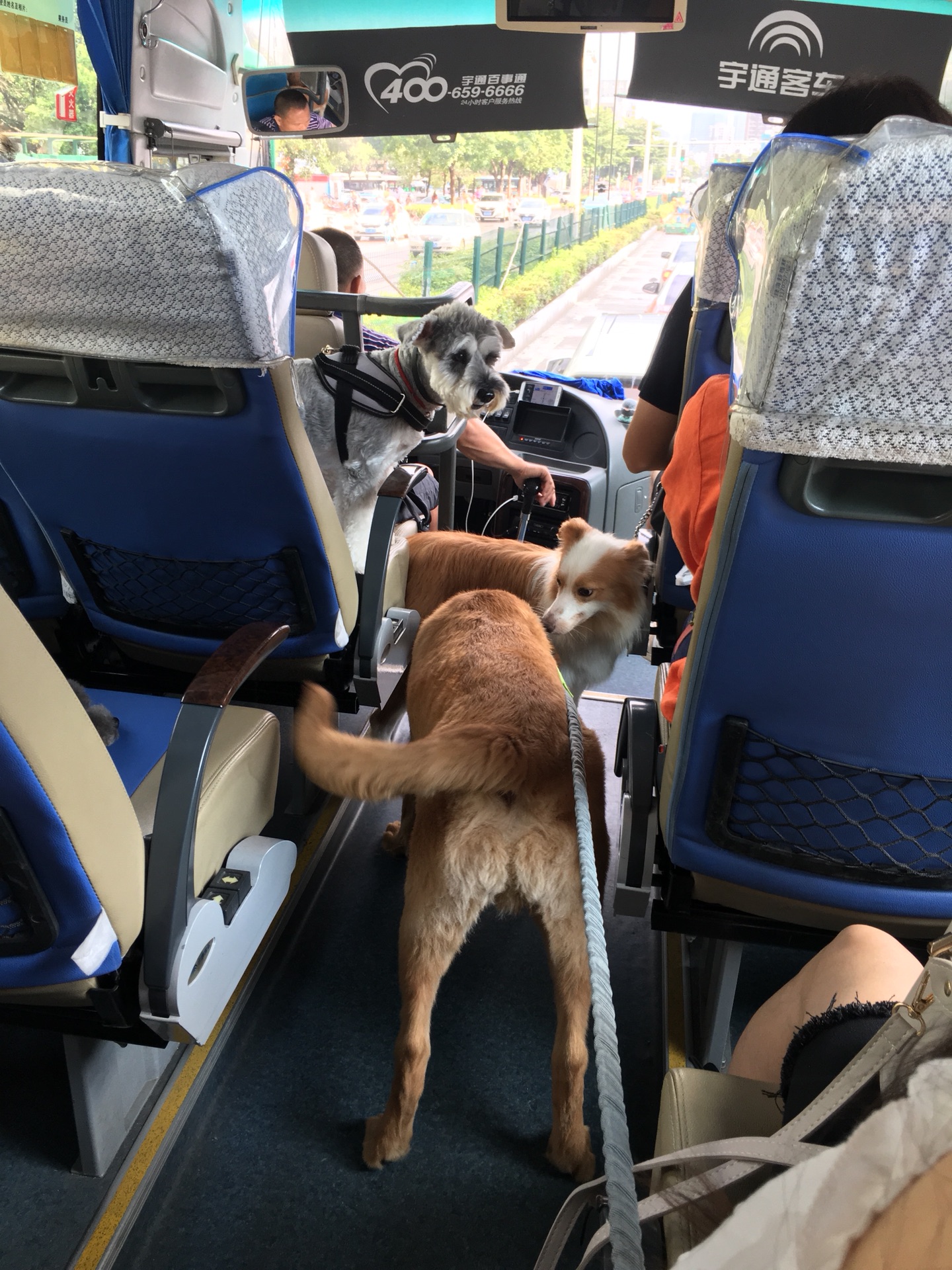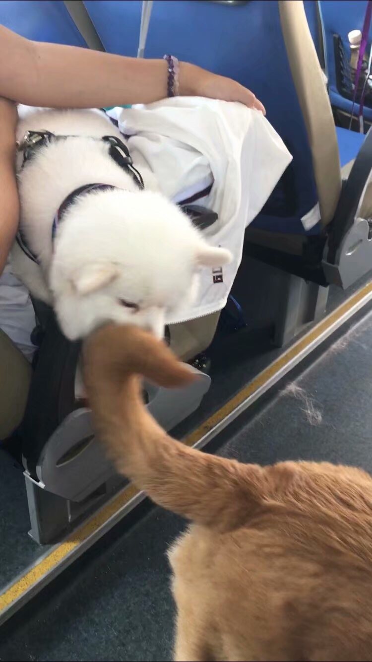 一直以为我帅不太会交际,没想到这狗子在车上,前面后面不停的溜达,遇见每个座位上的狗子都要去撩一撩,感觉他的撩骚功能挺强的,戴个帽子上岗,就可以给自己挣点零碎狗粮了。