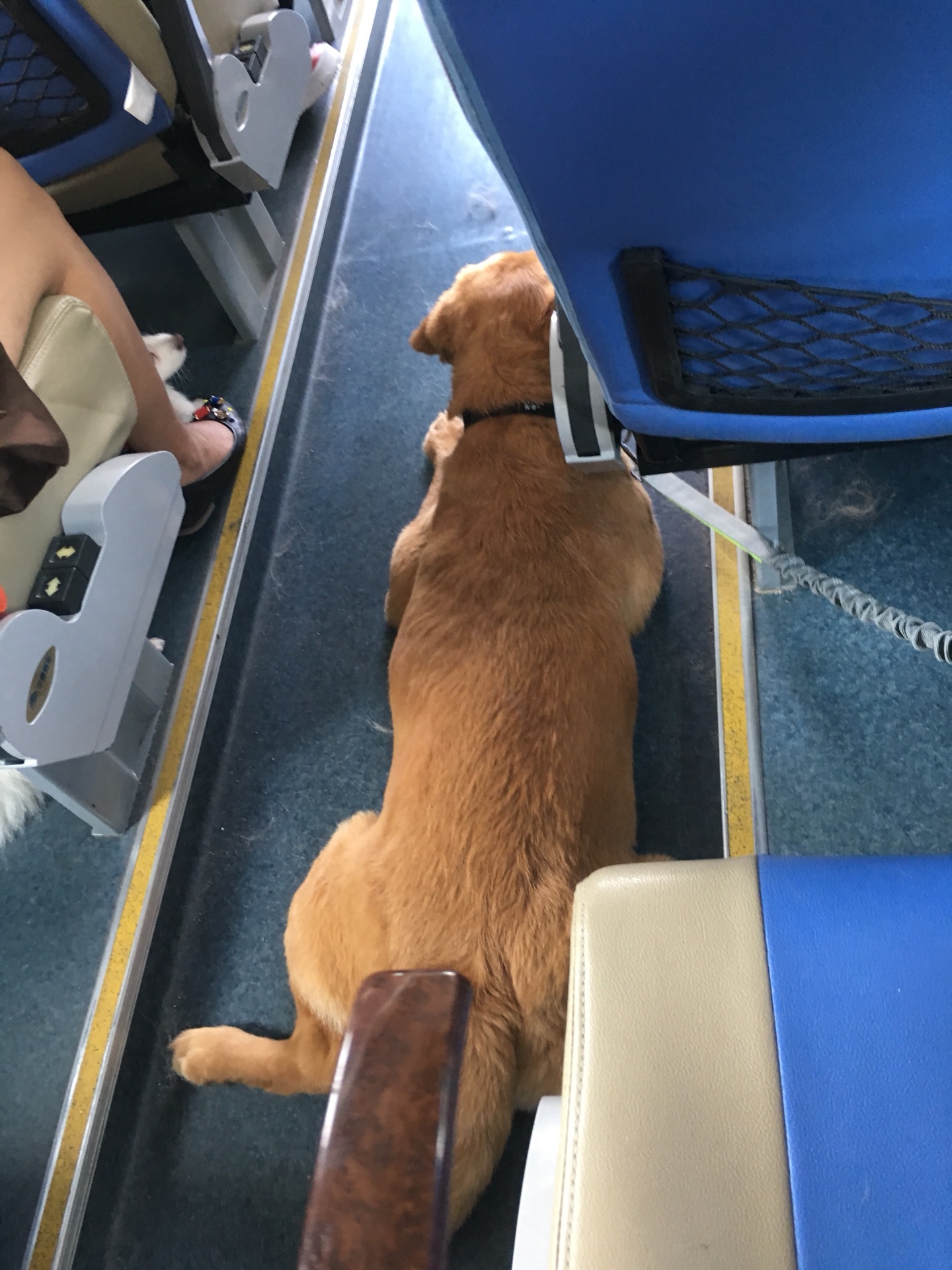 别人家的狗子都睡了,只有帅还在毫无素质的前后乱窜,别人家的狗都是睡在座位下面,只有帅非要趴在过道里,真是够了,我家这只土味大狗砸呀