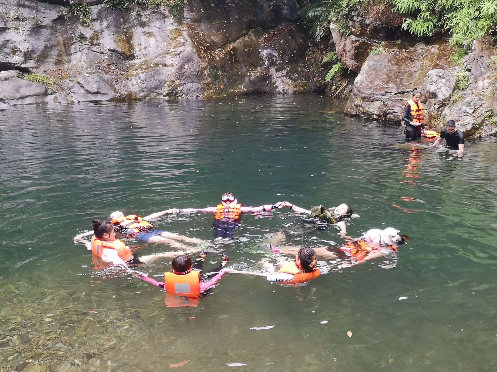 到了潭边,才发现原来自己之前对溯溪的概念完全是错误的了,之前以为,溯溪嘛,只是鞋湿,腿湿,大不了腰部以下浸水罢了,没想到,竟然是全湿!!!因为是要游泳哒