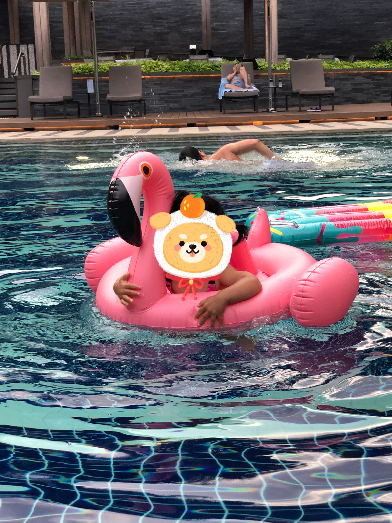 事实证明,丽思卡尔顿的泳池虽然不大,但是人不多,设施和服务也很完善,小朋友跟我们都很开心。