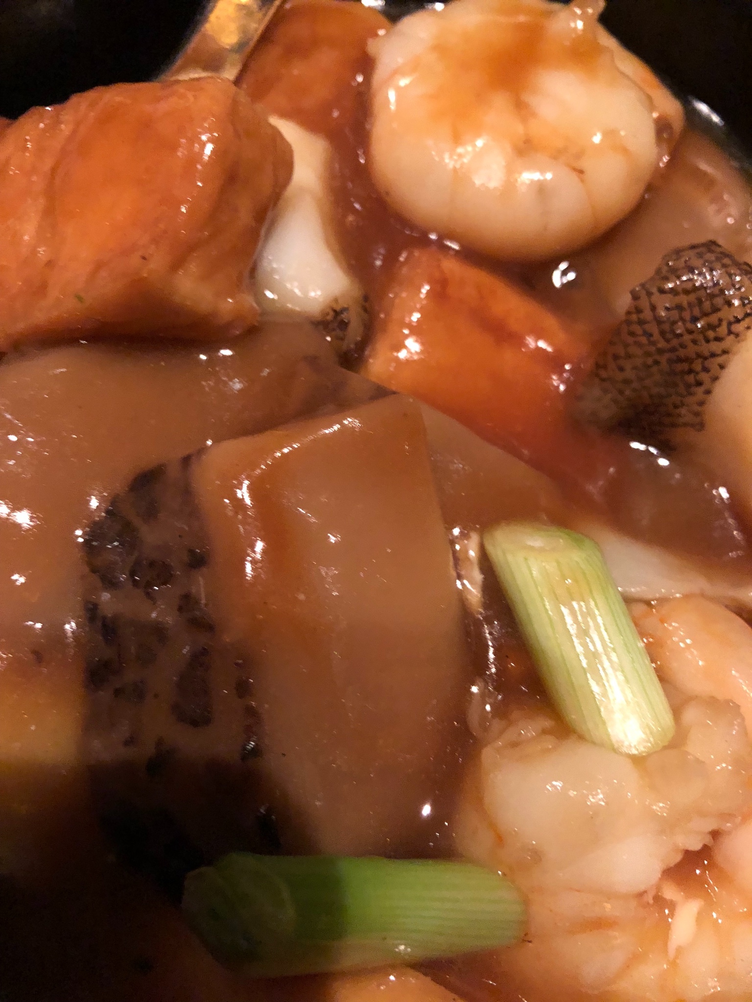 这一天是我们家二丫头的两岁生日,那一定要找个好吃的地方帮她庆祝一下,免得舟车劳顿,我就选择了酒店楼下的中餐厅 夏苑 Summer Pavilion,还是米其林一星来的哦。我们点了碧绿炒响螺,花胶汤,龙虾泡饭。。。。。响螺真的是太太好吃了,又鲜又香又甜!Yummy!至于其他的呢,也就是中规中矩的粤菜馆子,没有过于惊艳但是绝对也不难吃。哦,对了,当天我在餐厅吃饭还碰到了郑中基,当时我看见他脑子里第一时间显现出来的是,哇,左右为难