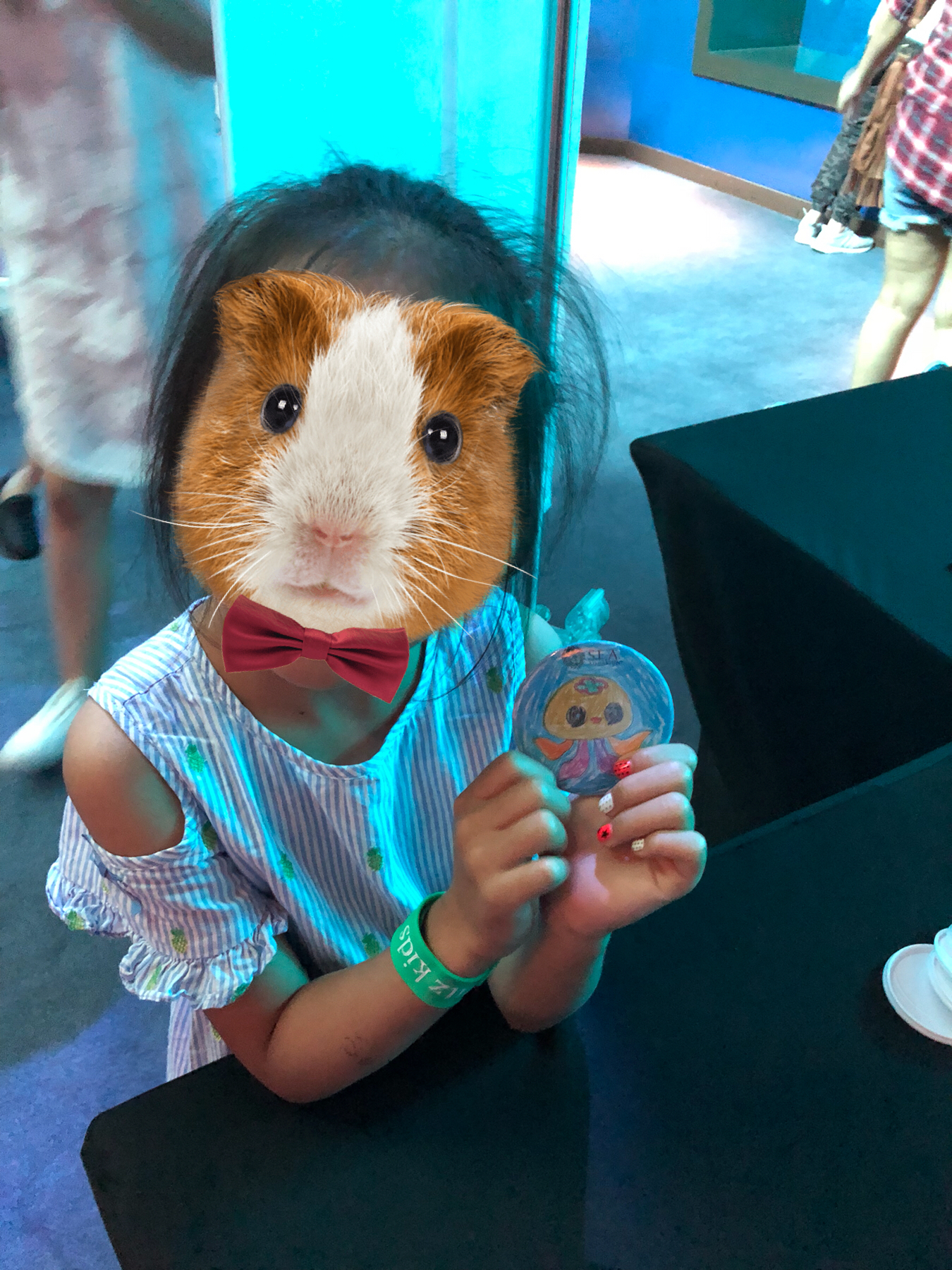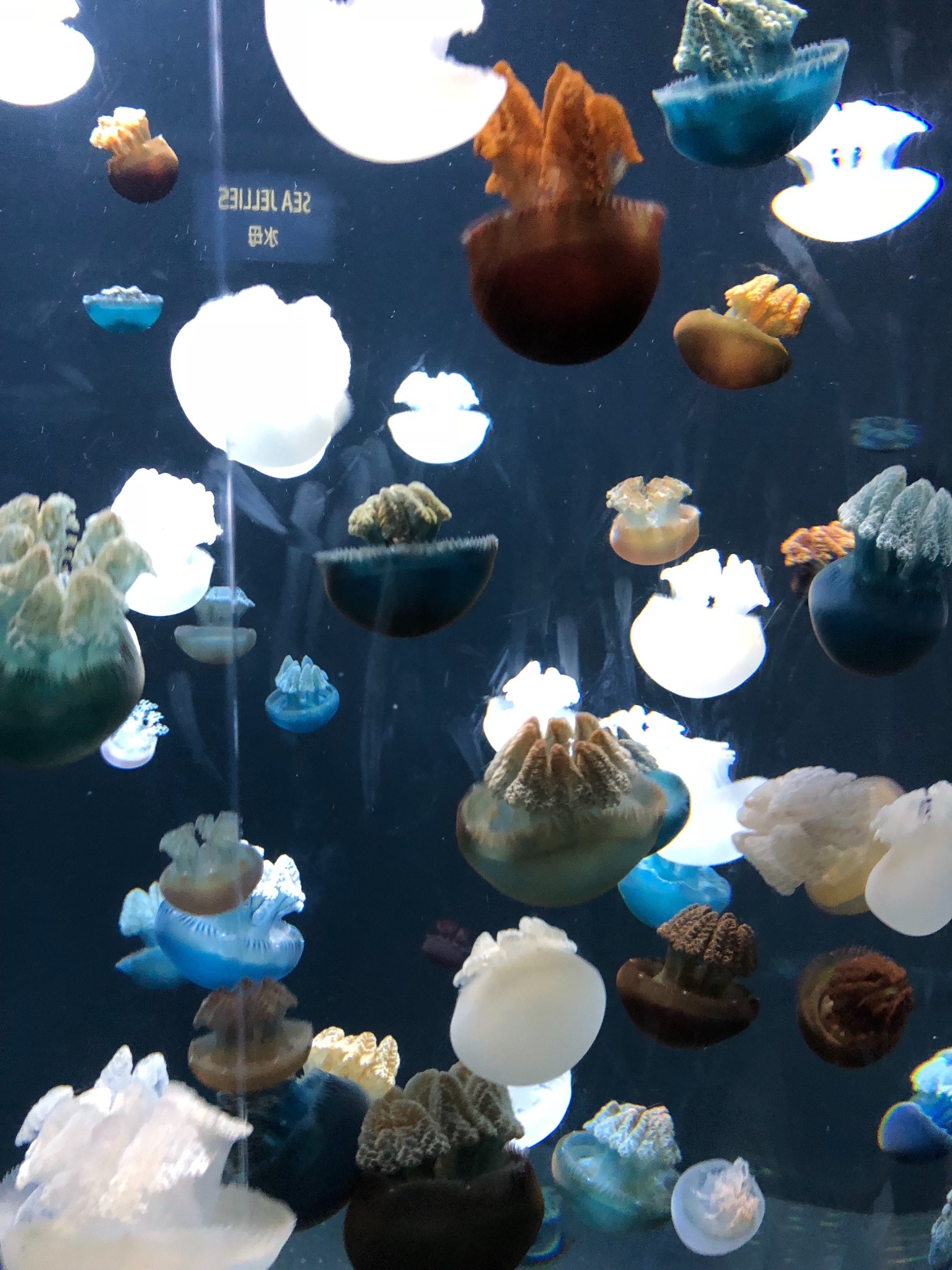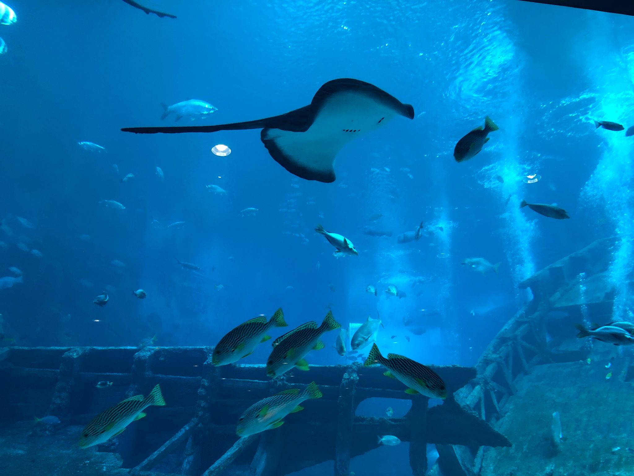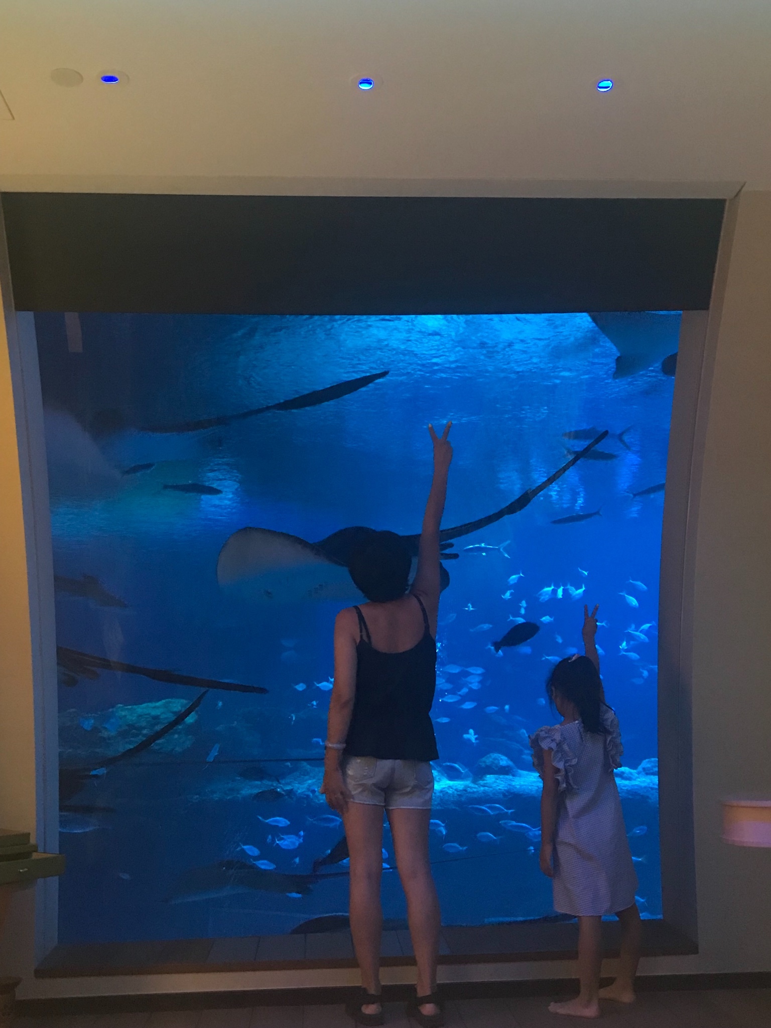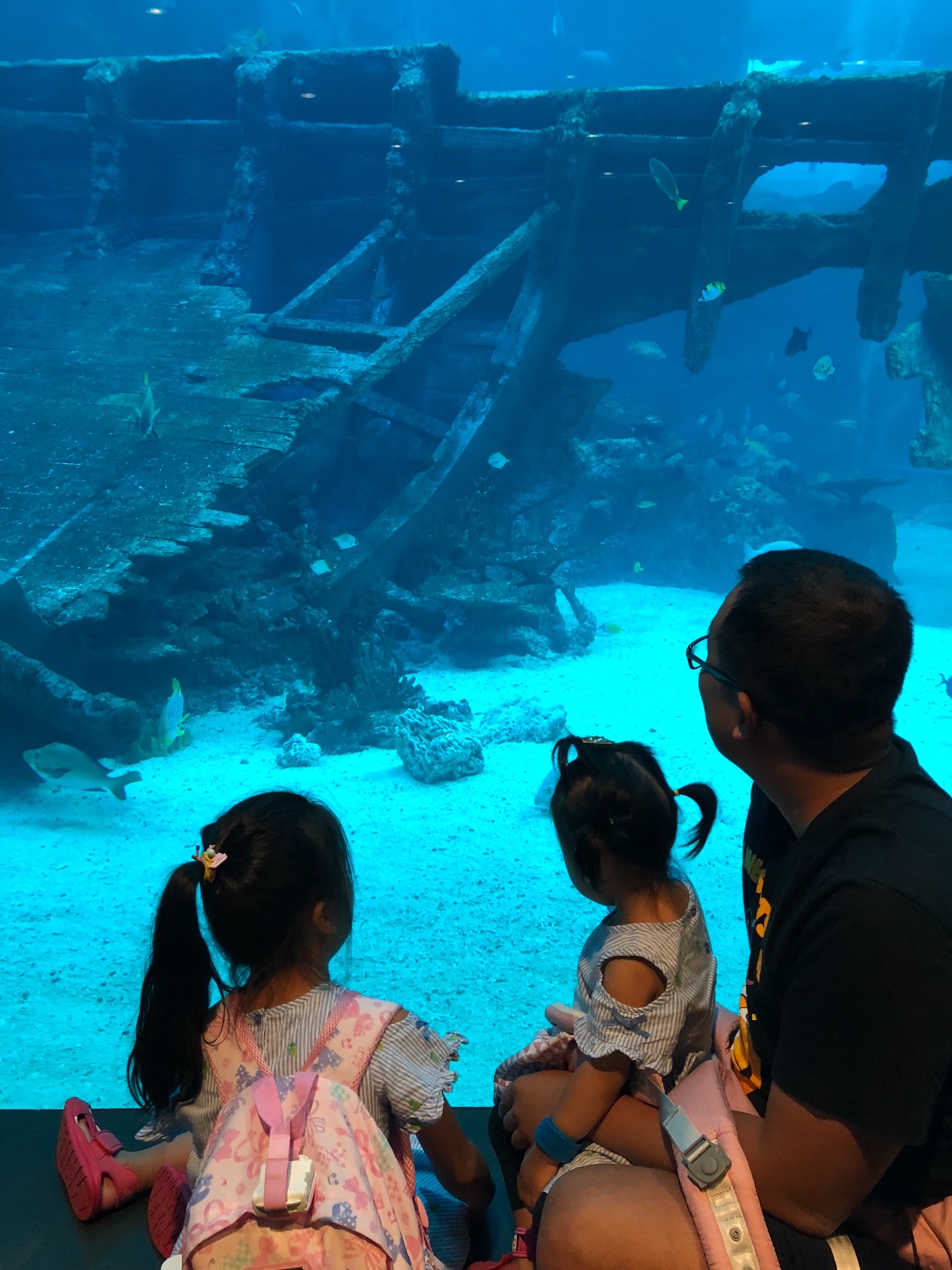放下了行李,我们就直奔S.E.A. 海洋馆。海洋馆也不是很大,整体逛下来的时间大概两三个小时就够了,跟其他的大的海洋馆没有什么本质区别,但是看着游来游去的鱼儿们,心情真的很愉悦。中间还有个地方可以让小朋友DIY勋章,我家老大做了一个很漂亮的小水母勋章送给妹妹。