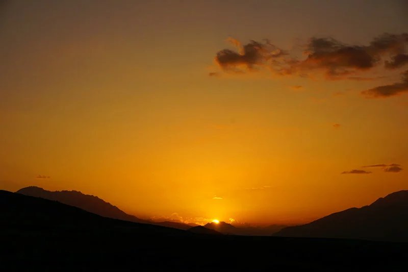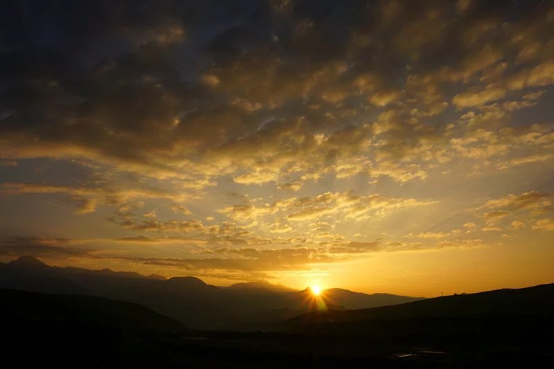 早上五六点天还未亮的时候,三个大人不约而同醒来了,走出街道抬头看去漫天星星。大家商量了一下决定让娃继续在房里睡,而我们到附近的清真寺转转,等待日出。在太阳快要冒出来的时候,有人提议到昨天的后山拍大片,但路途遥远,三个人没有交通工具来不及上山了。最后在清真寺前不远的一处高地抓拍日出的到来。