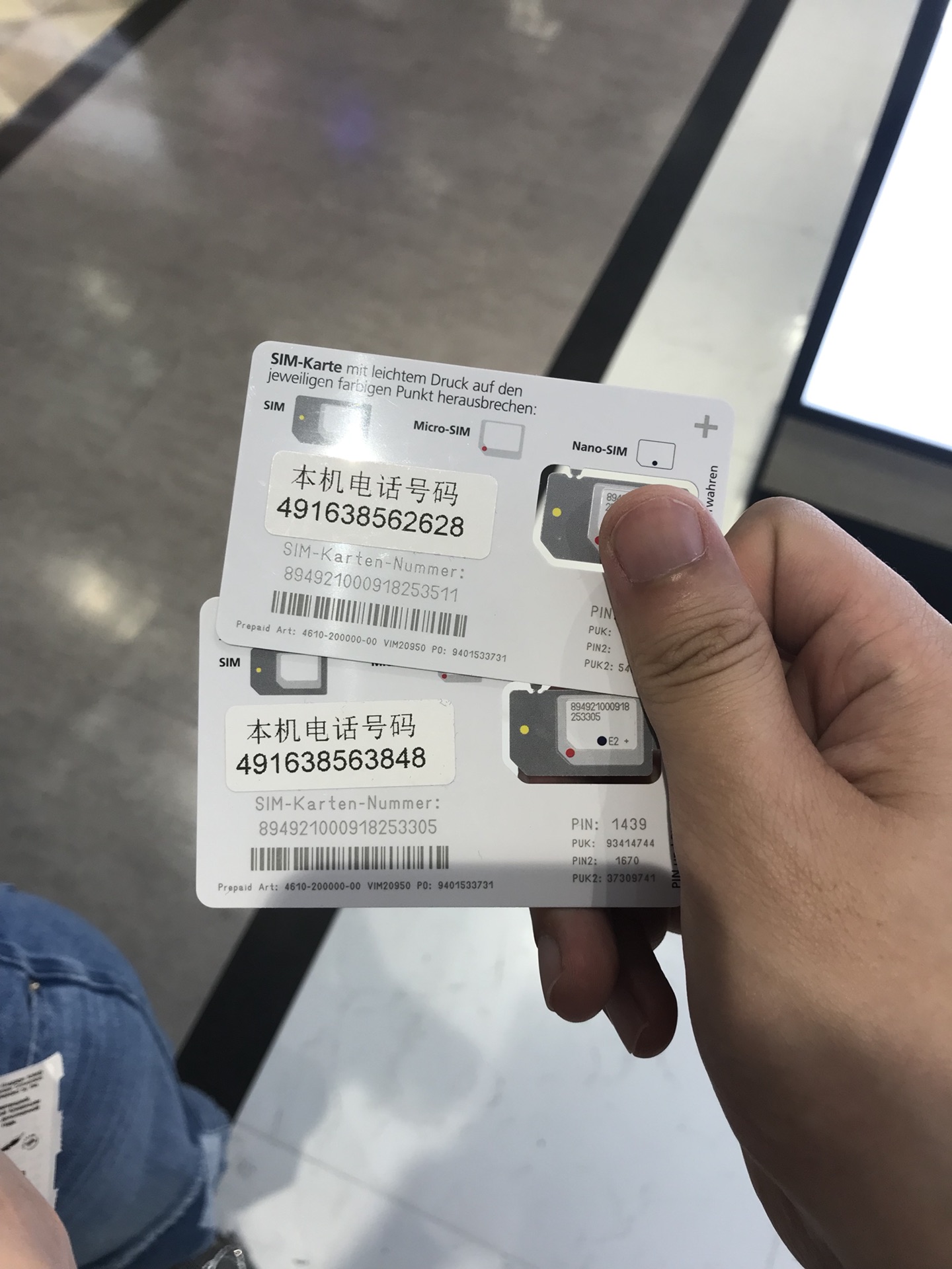 某宝买了欧洲通用电话卡,上网3G,电话打回国,15天够用,唯一的缺点是网络信号不太好,很多德国山区就没有信号了,不过70几块钱还要啥自行车啊。记得出发前一天打电话给客服激活即可。