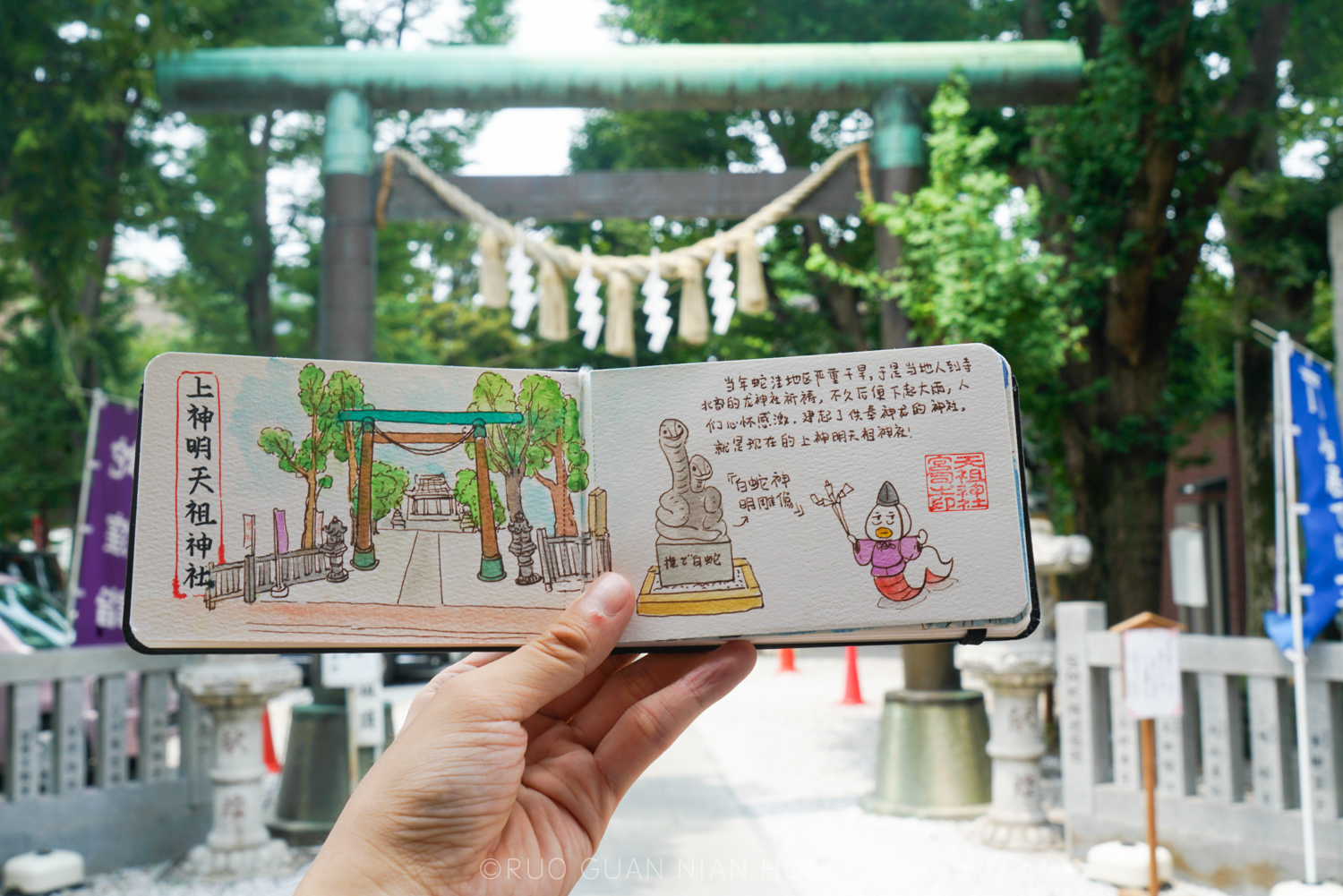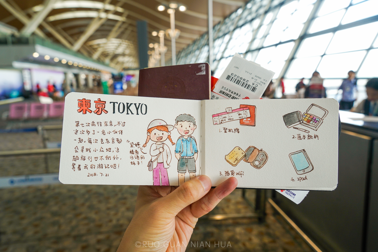 我是一名旅行漫画师,我一直喜欢带着手帐去旅行,用画笔和相机纪录旅程。这次东京的行程宽松,有着充足的时间变走边画。回国那天翻看手帐,竟然画完满满一下本,突然觉得收获满满!