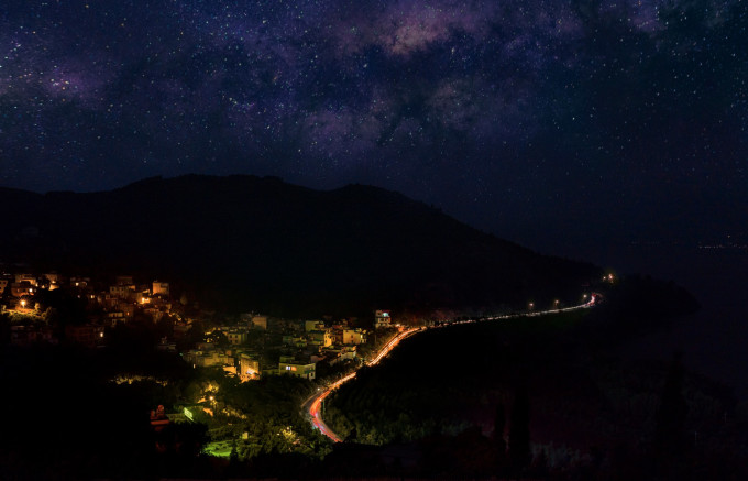 深夜,抚仙湖已经完全隐匿在黑暗中,路灯,屋光,行车的尾灯划破黑夜,星辰若现,唯有抚仙。