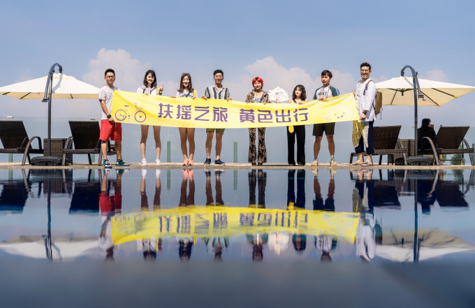 8头九州“奇珍异兽”,身披五彩圣衣,脚踏黄色ofo,踏上了扶摇之旅。