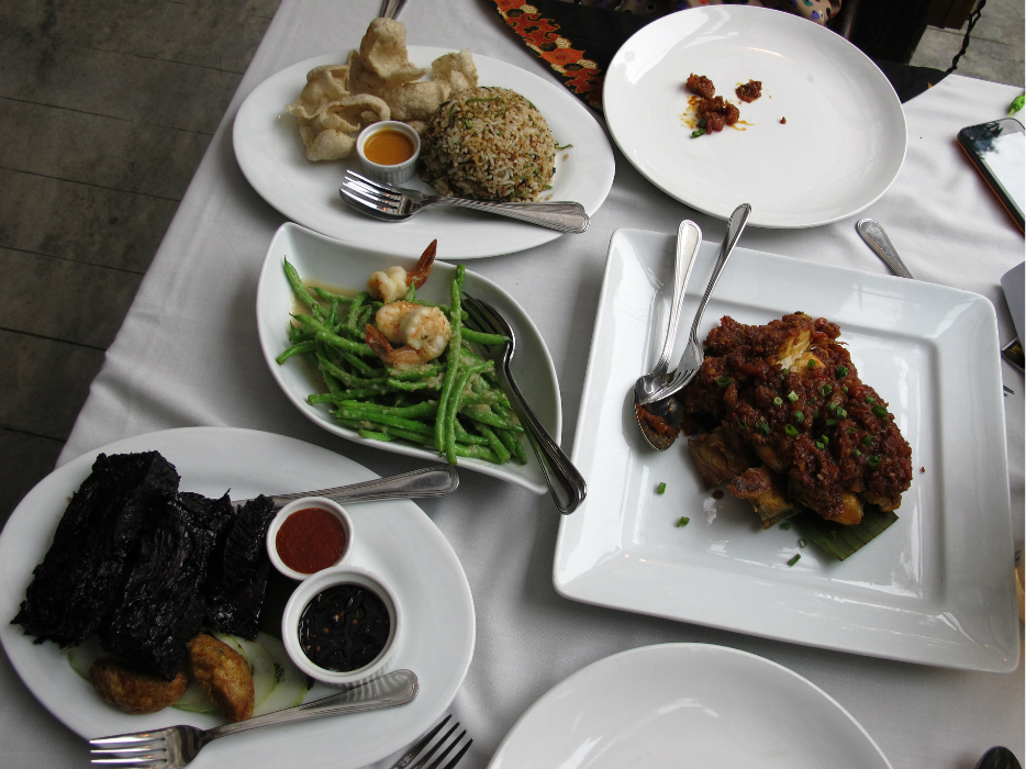 1.先来家马来风味的小资风餐厅Bijan(/poi/6388647.html),是现在比较流行的调调,传统的马来元素,但又融合了一点点西式餐点的做法,氛围不错,特别是七点多以后,华灯初上,很relax,很难想象,在传统的阿罗街,和新派的酒巴”阿罗二街“(俺和LG的戏称,前几年只有阿罗街,现在旁边那条按国内说法叫酒巴街的东东很成气候了,很热闹,俺们称之为”阿罗二街“)。地址:3 Jalan Ceylon,沿着阿罗二街一直走,过了十字路口就到了,马路右手边,门头不显眼,注意看标牌)