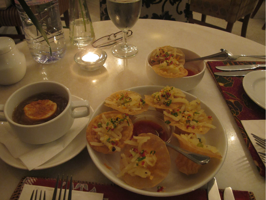 当当当!前菜,哈哈!和餐厅的名字同名“Top Hat”!香脆的“帽子”,清爽的各种萝卜丝和时蔬,一口“阿呜”下去,饱饱满满,好吃!左边的是洋葱汤,说实话,很一般,不建议。