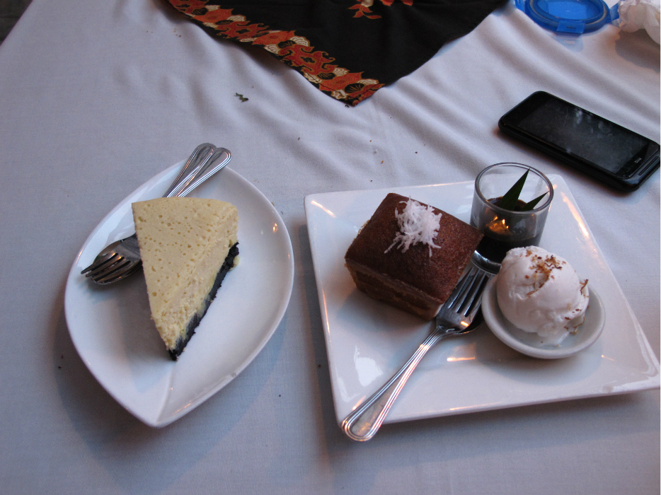 最爱的是它家的甜点,虽然还不够精致,但口味一极棒!左边的是榴莲蛋糕,不好榴莲这口的慎入哈,好这口的五星推荐噢,亲!三个字形容:香、糯、软!小小一口,回味无穷,将榴莲的香溢、蛋糕的香软、起司的香滑完美地融合起,最后再配上一点点黑色巧克力风味的蛋糕,略带些许苦涩,与之前的蛋糕香甜完美呼应!右边的是Gula Melaka Cake,枫糖味的蛋糕和椰子味的冰激淋,枫糖味和椰子味都很足 ,但制作手法和工艺比榴莲来说就差了点点,虽然还是好吃