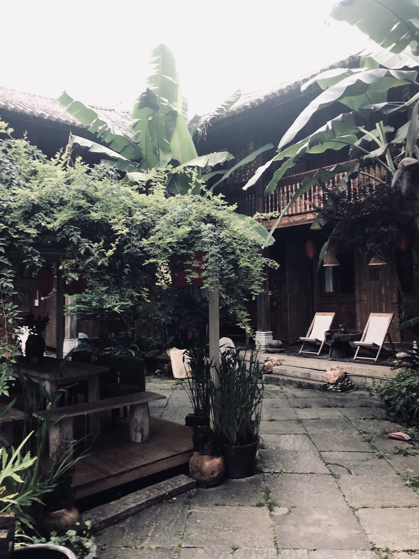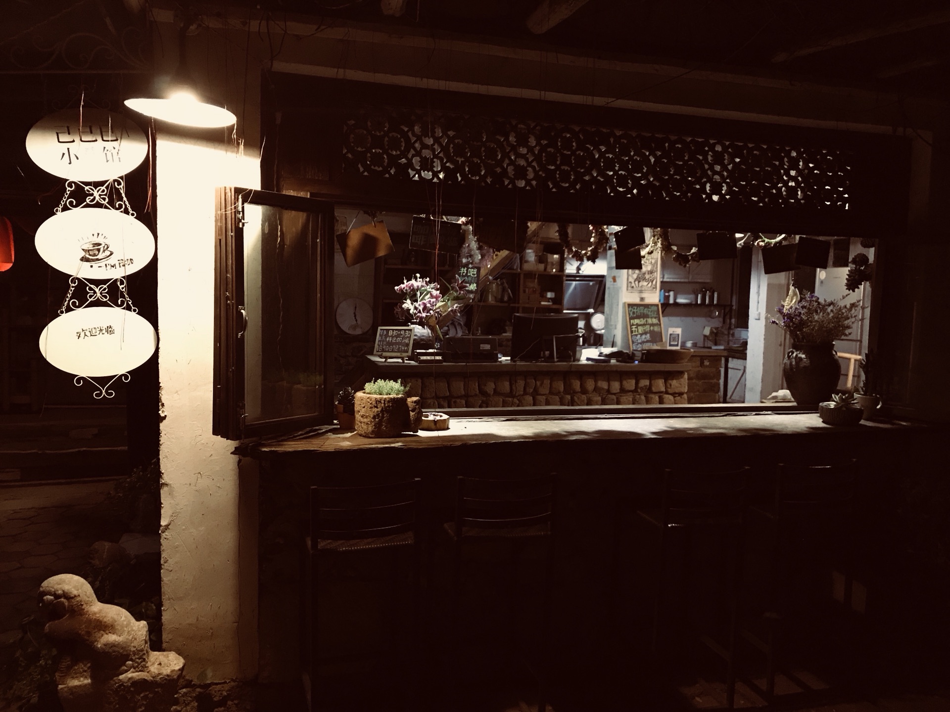 一路舟车劳顿的我们终于在下午七点左右到达了喜洲镇。热情的前台接待帮我们提行李安排房间。紧挨着客栈就是他的餐馆,吃的都是地道的云南菜。