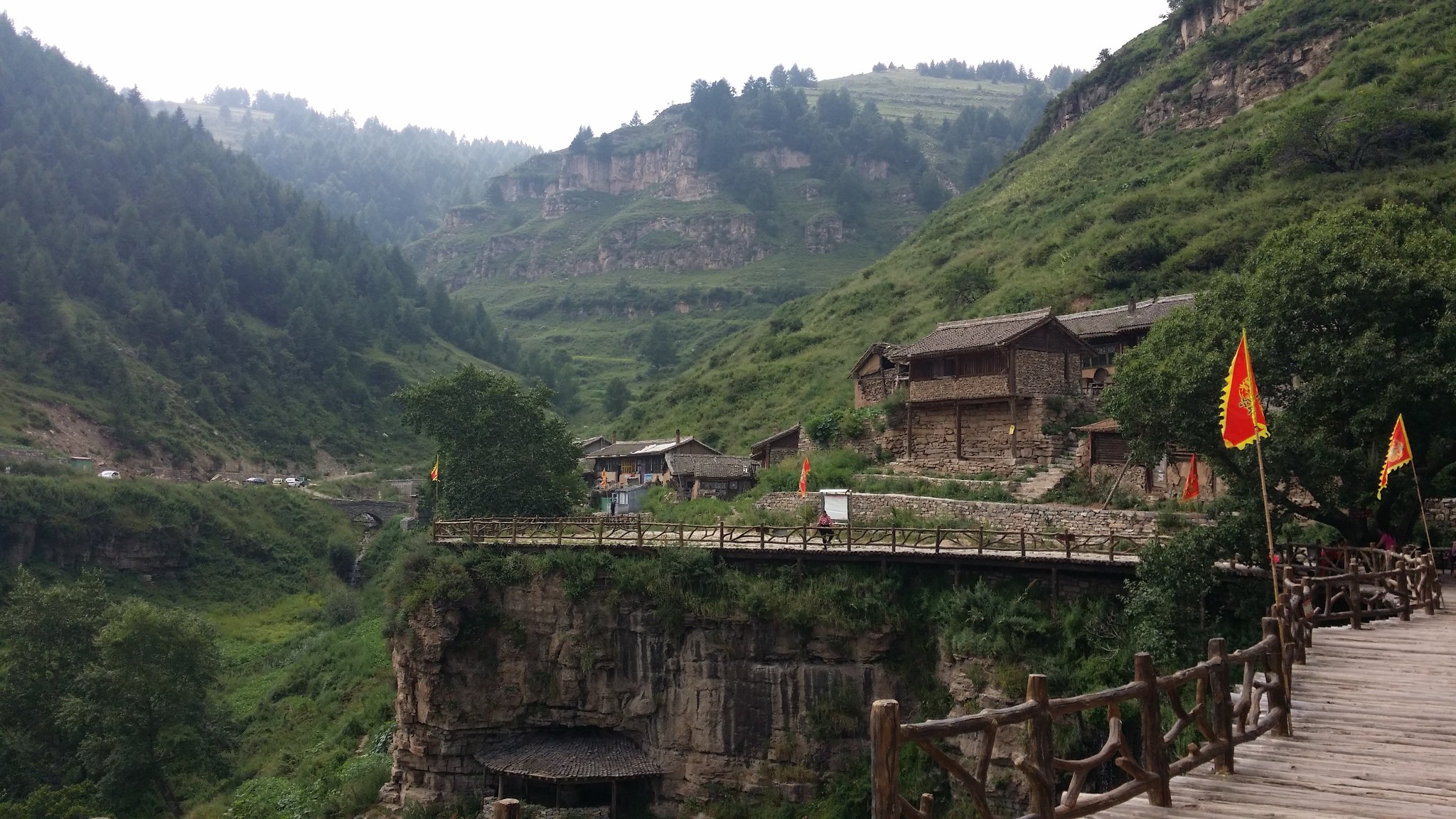 村内房屋因崖就势,从崖底抬头仰望,极似空中楼阁,天上人间,而要进村, 则须沿着一条陡峭的山路缓缓而行。
