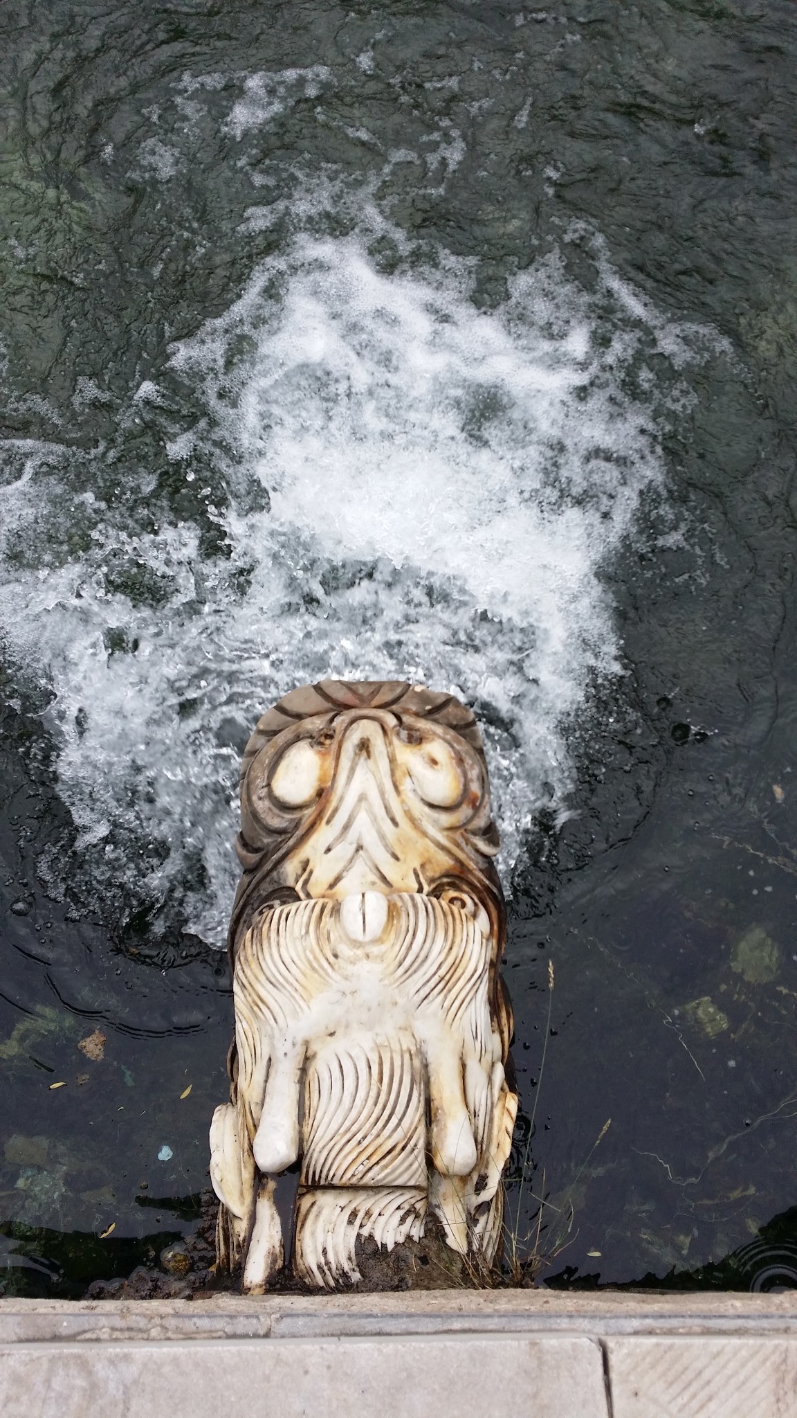 源头有一水塘,塘上石壁刻有“汾源灵沼”四个大字,塘边石壁上雕有一个龙头,龙口中喷出一股清泉,终年流淌不绝。