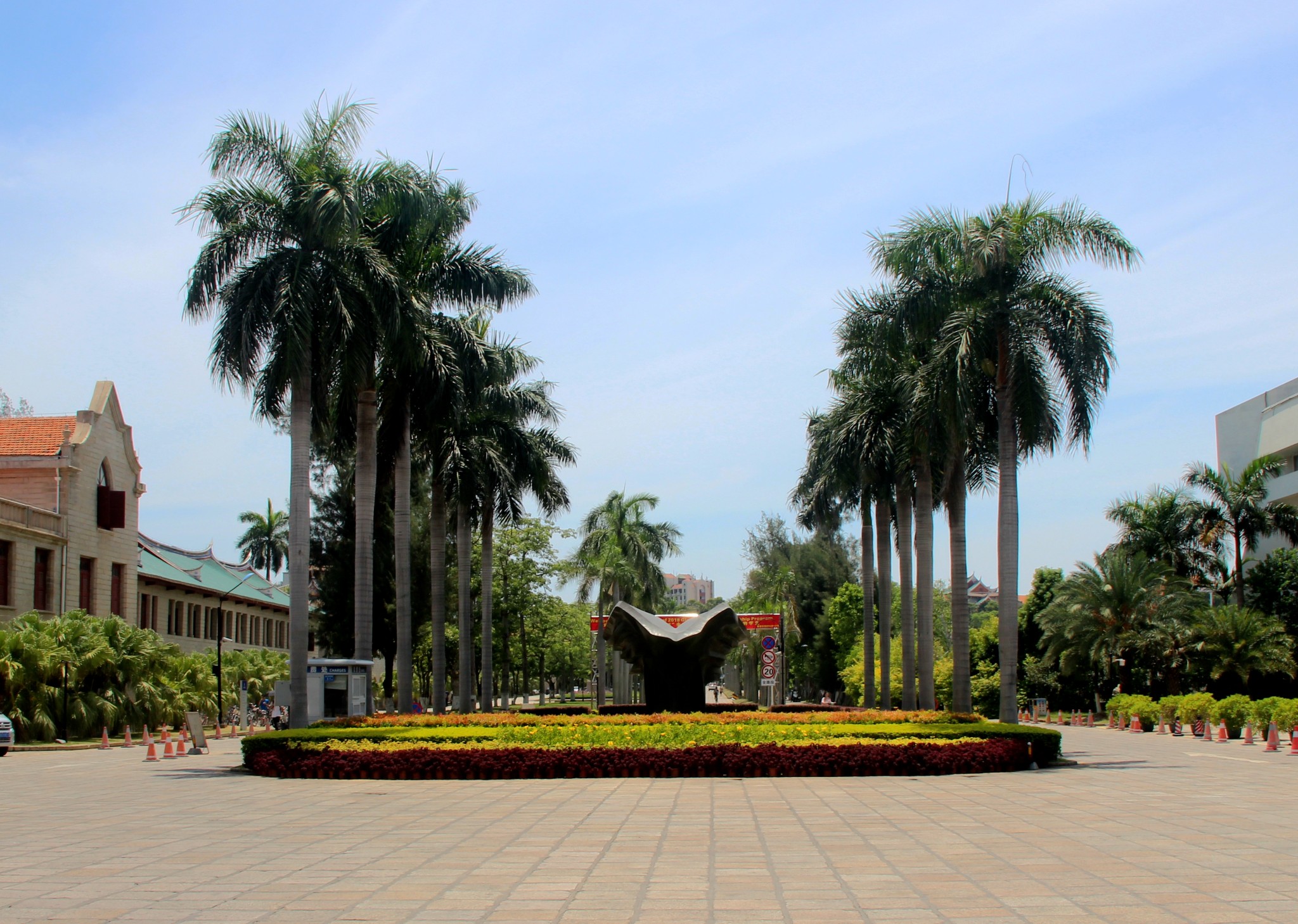 游览路线:从西校门进入校园,钟林美广场→群贤楼群→厦门大学科学艺术中心→厦门大学人类博物馆→上弦场、建南大礼堂→芙蓉湖、颂恩楼→情人谷→芙蓉隧道,从芙蓉隧道校门出校园,中间在芙蓉餐厅吃午饭。后来,一个人又从大南校门进入,欣赏傍晚的美景。