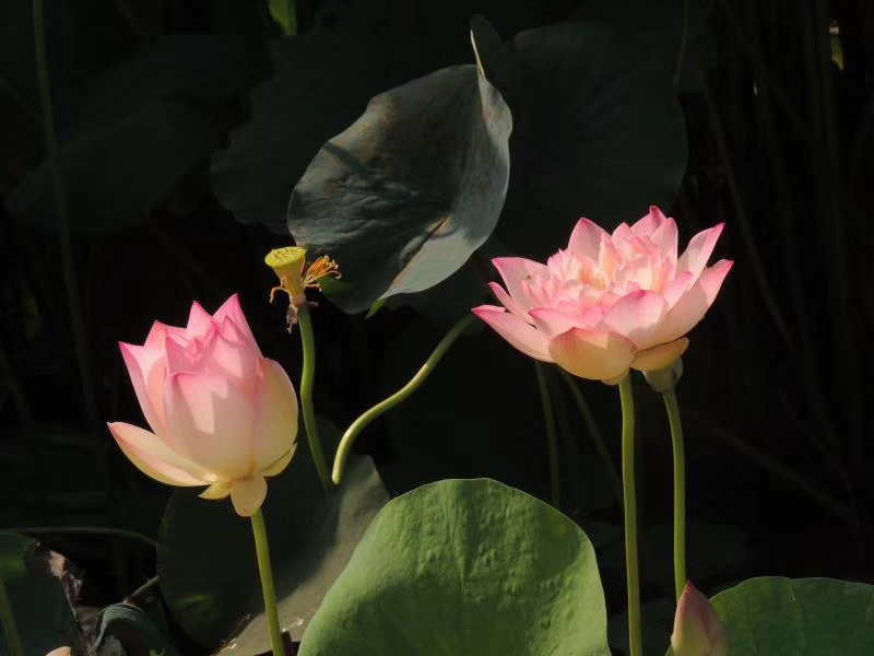 除了好多种荷花外,也有很多更清丽的睡莲。