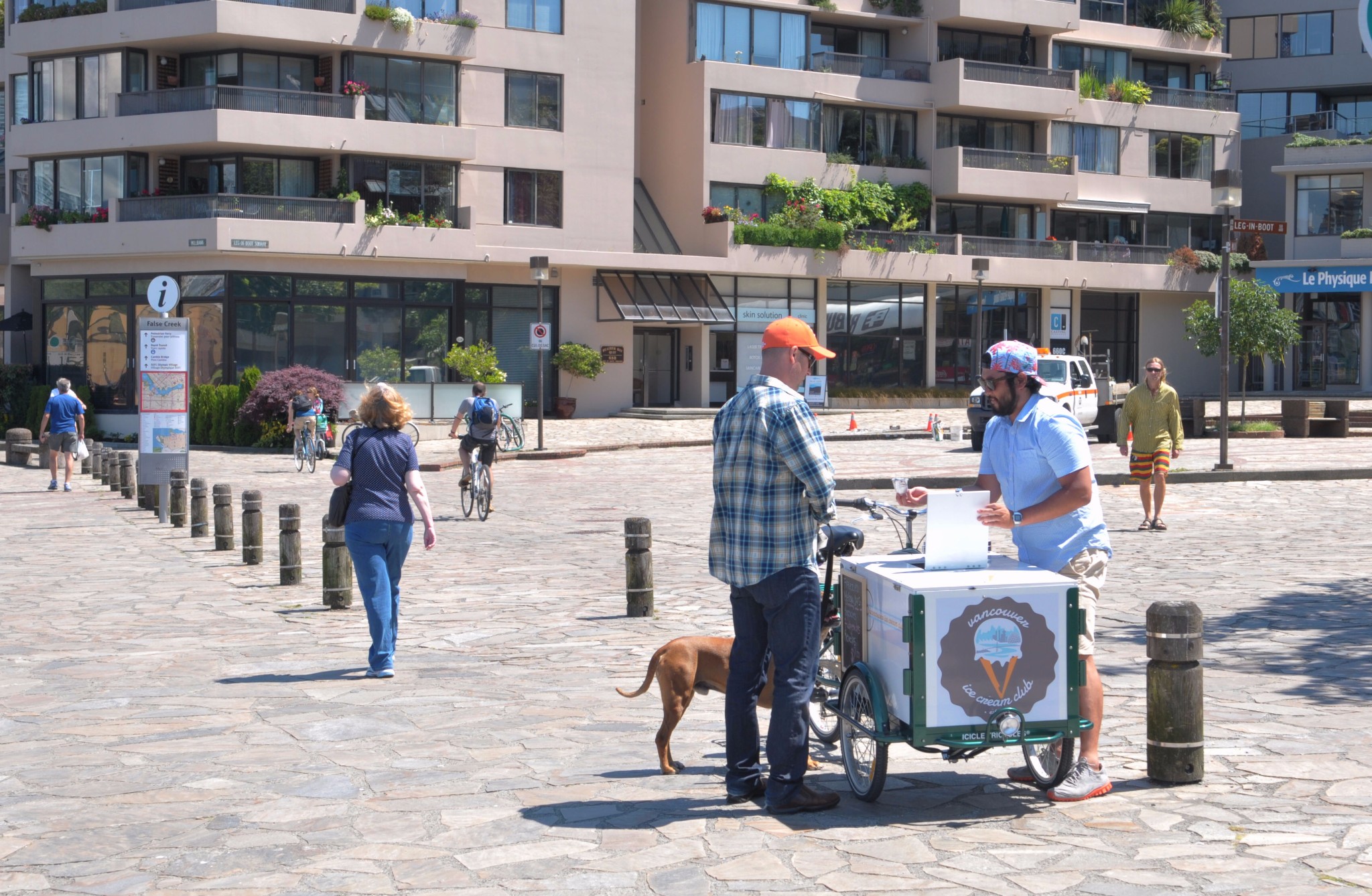 流动摊贩卖雪糕的。一条路上只有他一个摊贩,我不知道是政府有规定,还是做生意者很自律,有了一个,其他人就不来了。