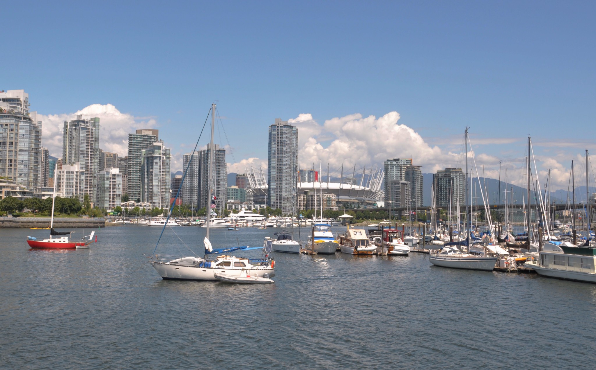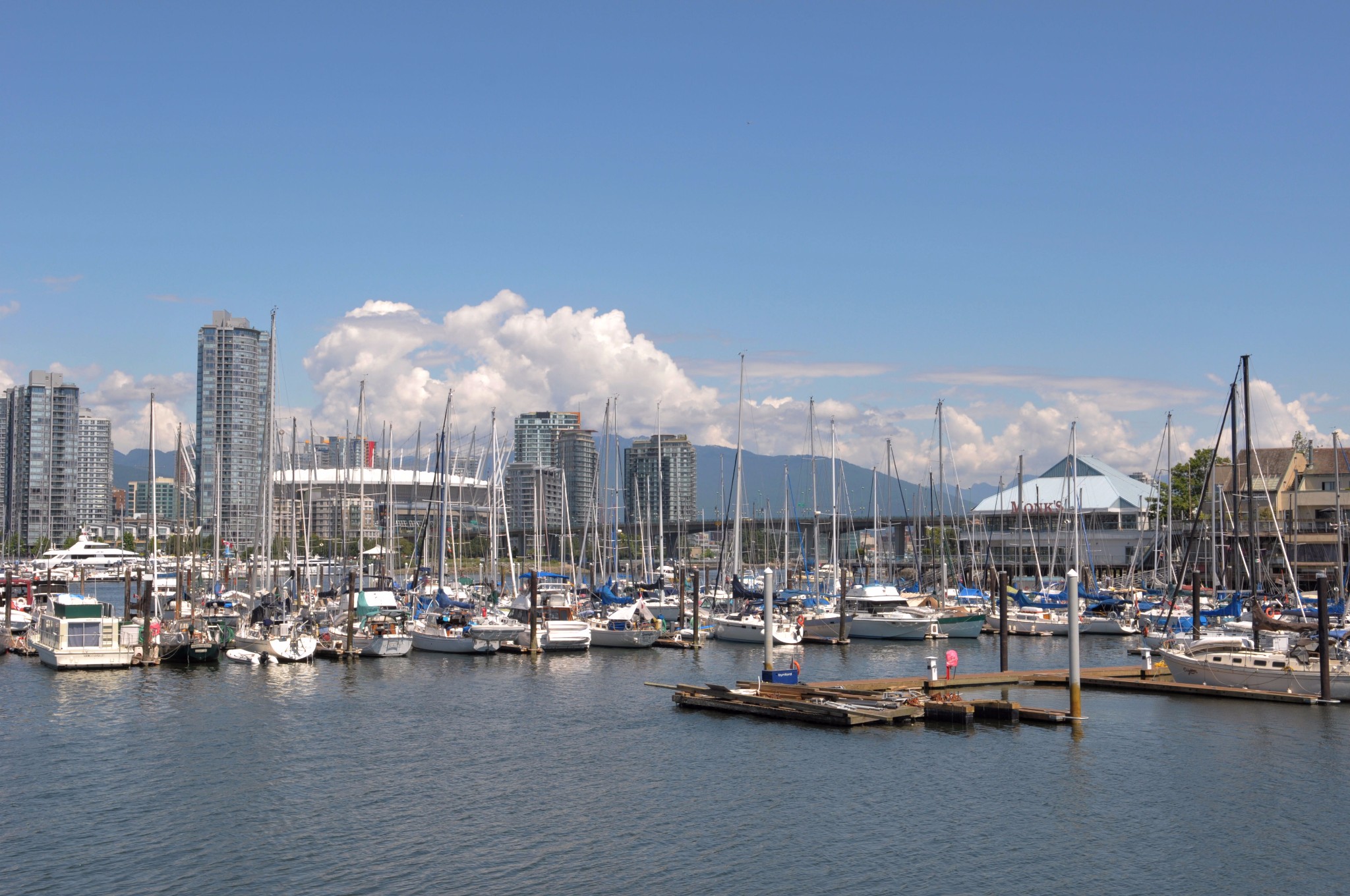 往前走,,可以隐约看到在游艇码头后面的运动场,这是哥伦比亚体育馆,2010年的冬奥会开幕式,闭幕式都是在这里举行的