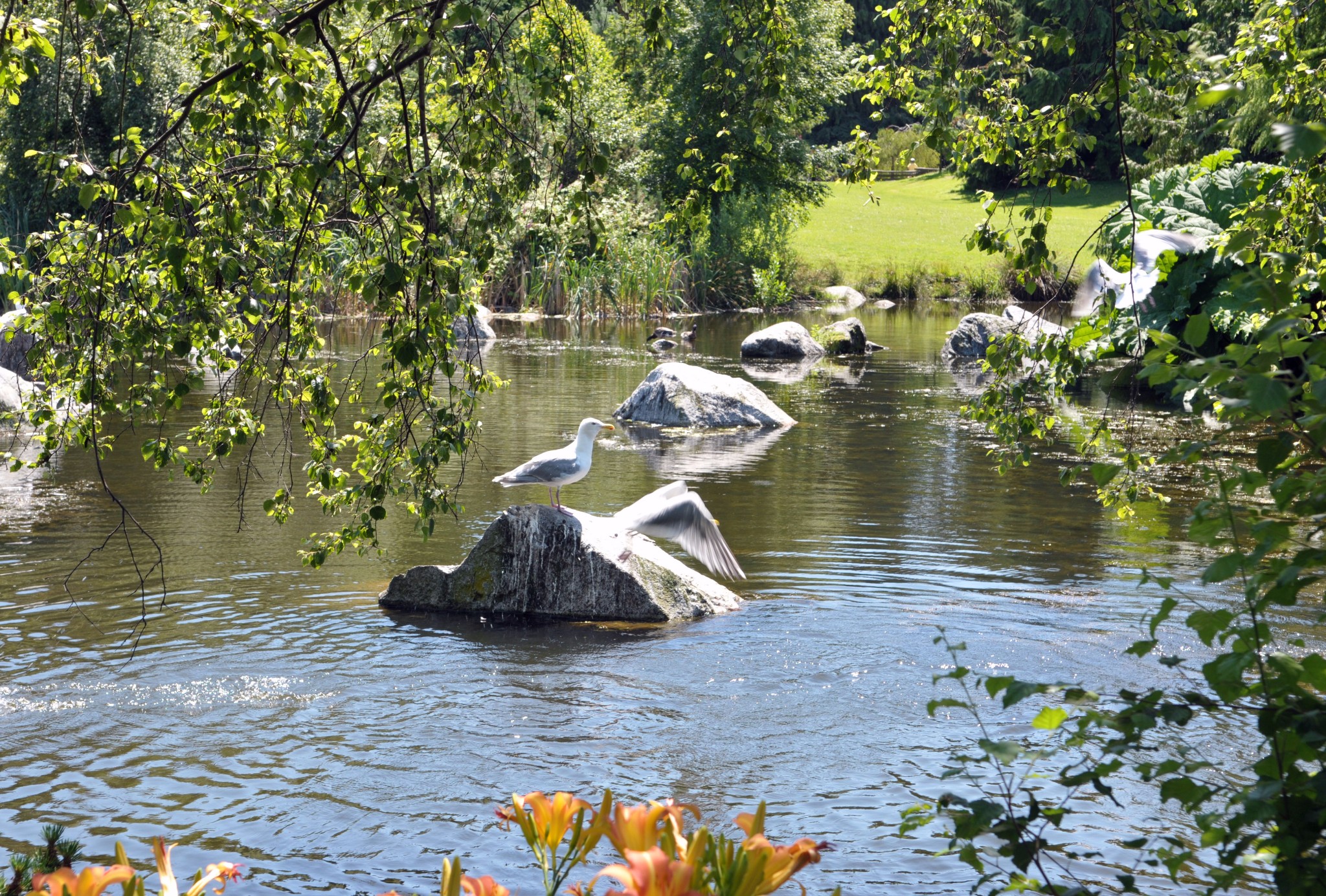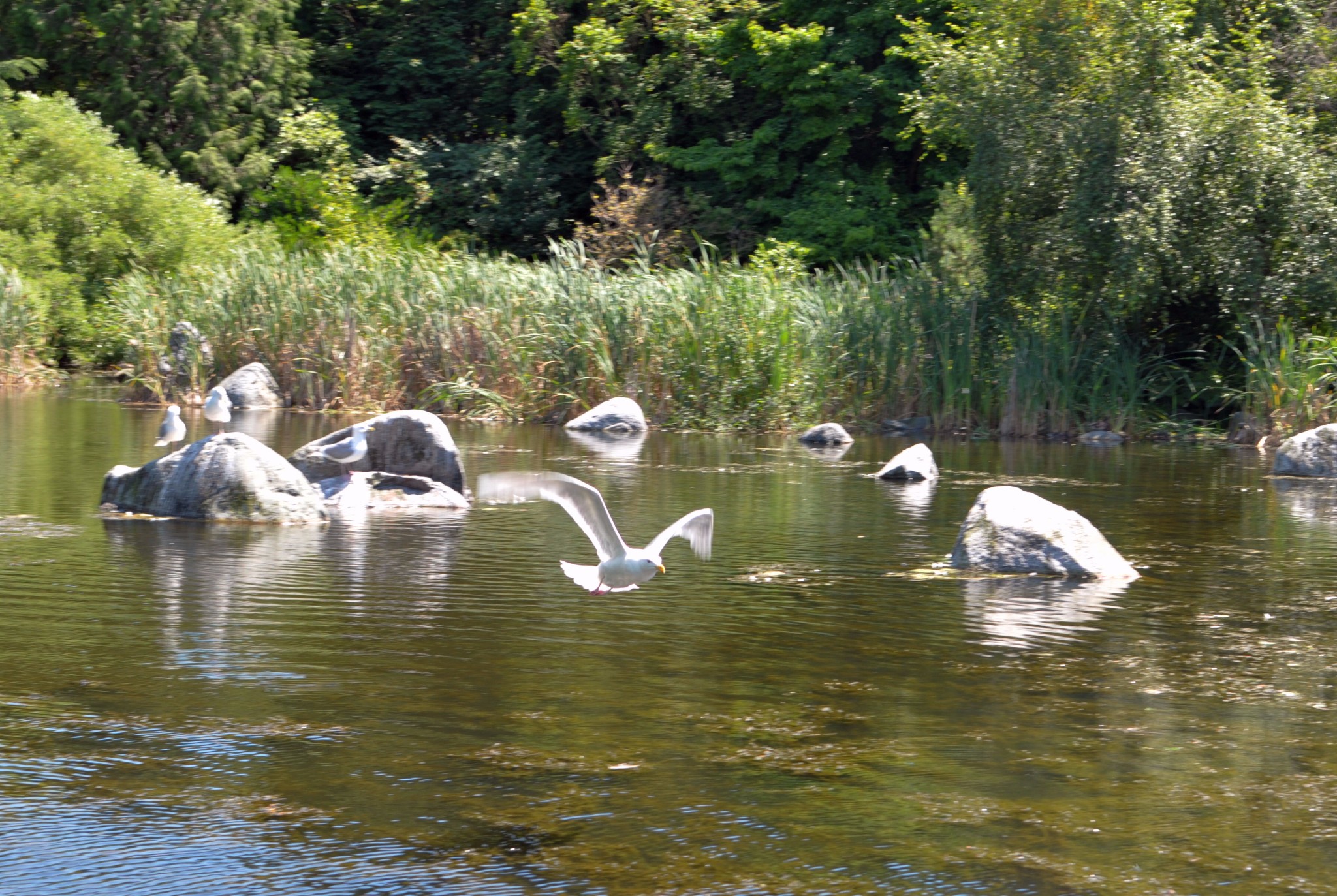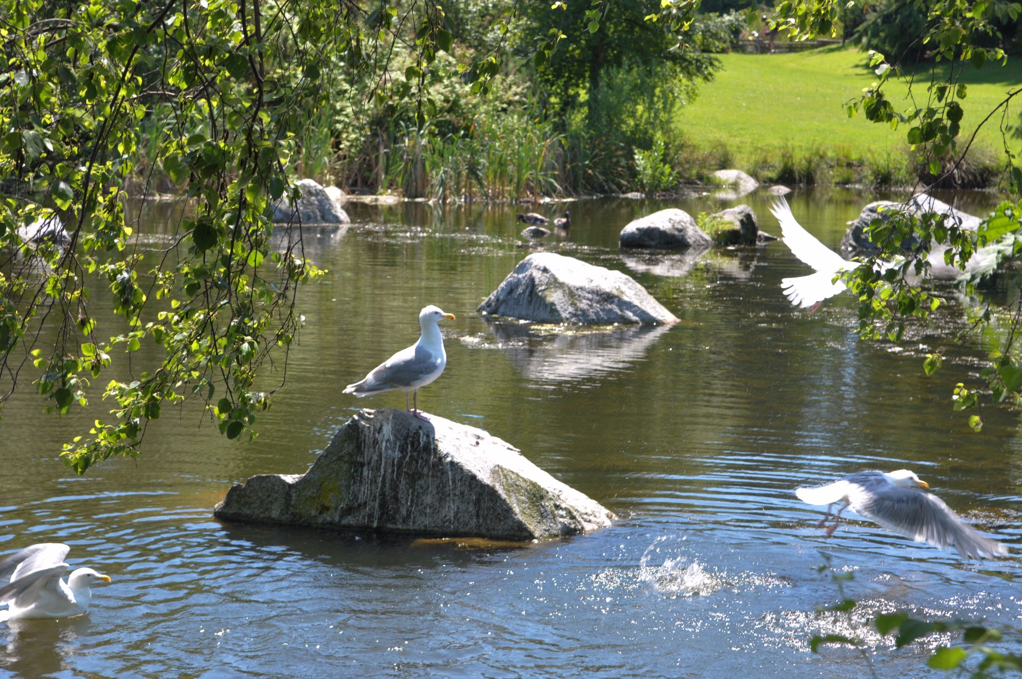 只能叫池塘的一个小小水域,却停留着不少海鸥在玩耍
