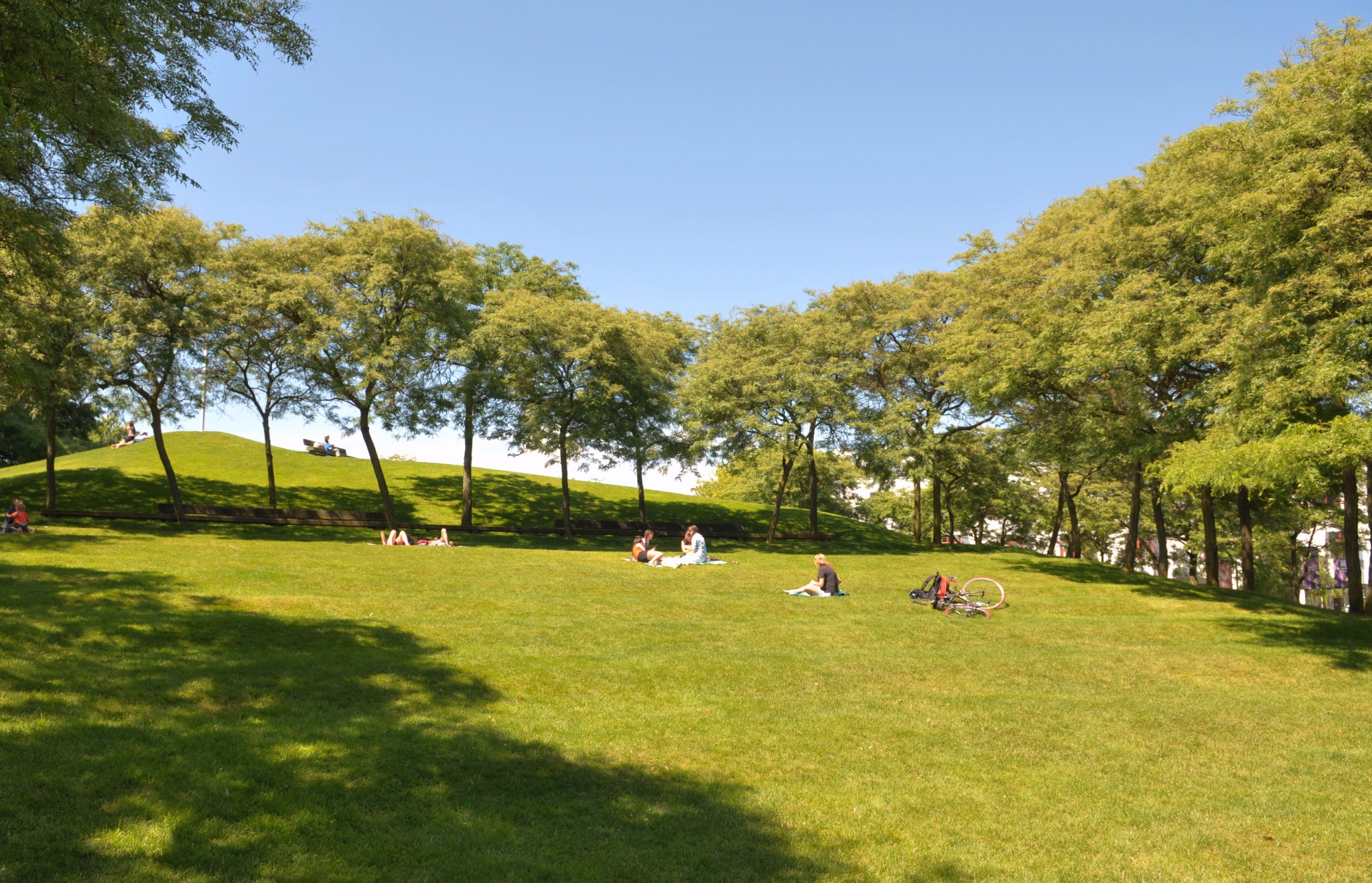 这条步道,沿着港湾,S型的延伸,所以港湾的景色会不时变化,左手边是蓝色的海,游艇,对岸的城市,以及远处的山峰,右手边则是绿色的草地,树丛,小池塘,再加上那些自由自在的海鸥,心旷神怡啊!