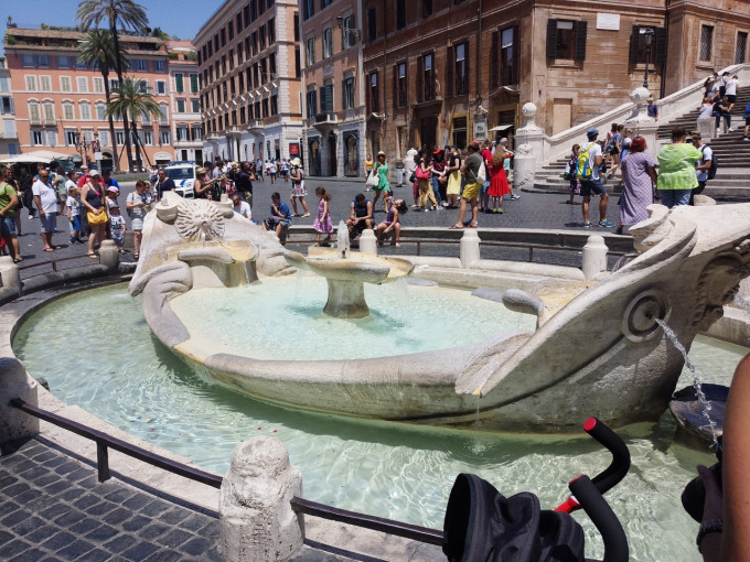 贝尼尼设计的破船喷泉,就在西班牙台阶前方。