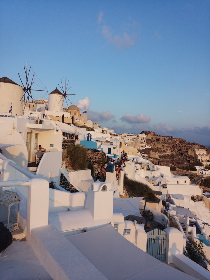 米兰到圣托里尼本来是要在雅典转机的,但是旺季每天都有几班早班的直飞班机到圣岛,我提前半年订的,两个人才1200人民币,订晚了会涨价或者没有票哦。