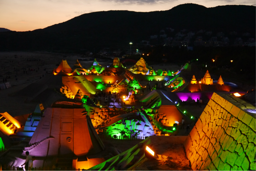大青山里的路都是单行的,所以寰岛巴士从青山峰又兜回了里沙,从里沙返回景区入口,我们没有走海滩,山路上会经过生态园,有一些娱乐设施。