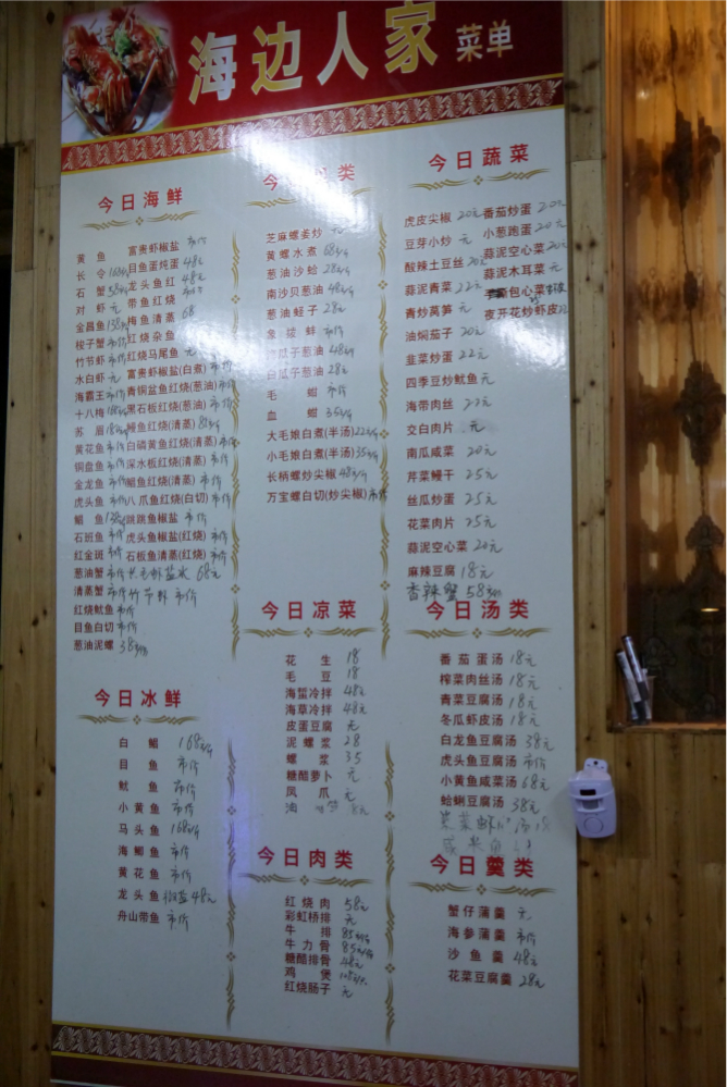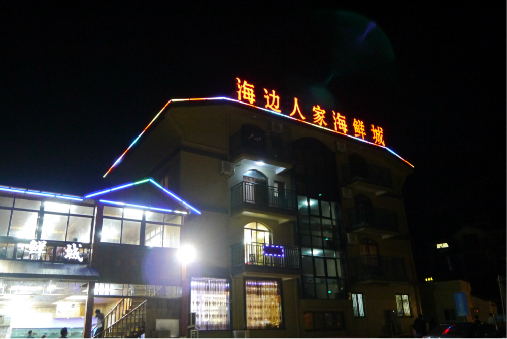 海边人家在沙雕广场出口的位置,晚上很醒目~价格比起沈家门要便宜得多,海鲜也新鲜~