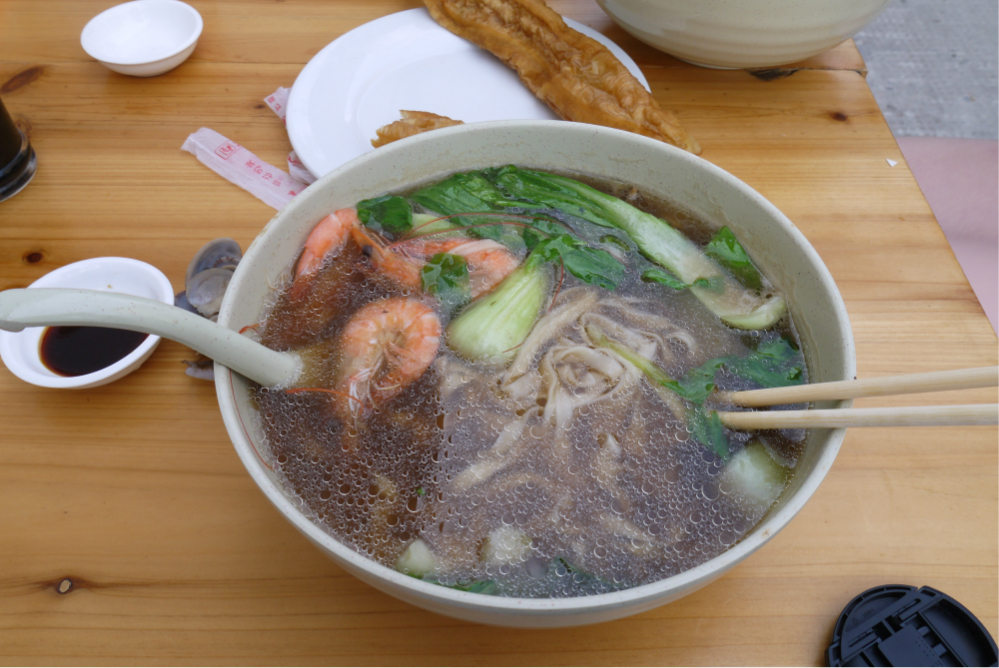 很多家宾馆都提供餐饮,自然也有早餐供应,我们吃了隔壁家的海鲜面,35一碗有点贵~