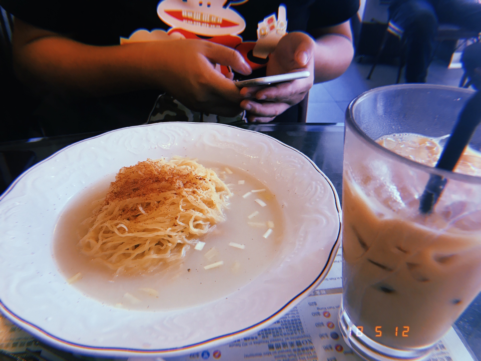 冻奶茶,云吞面,咖喱猪排饭……猪排分量很足,咖喱也是我最爱。