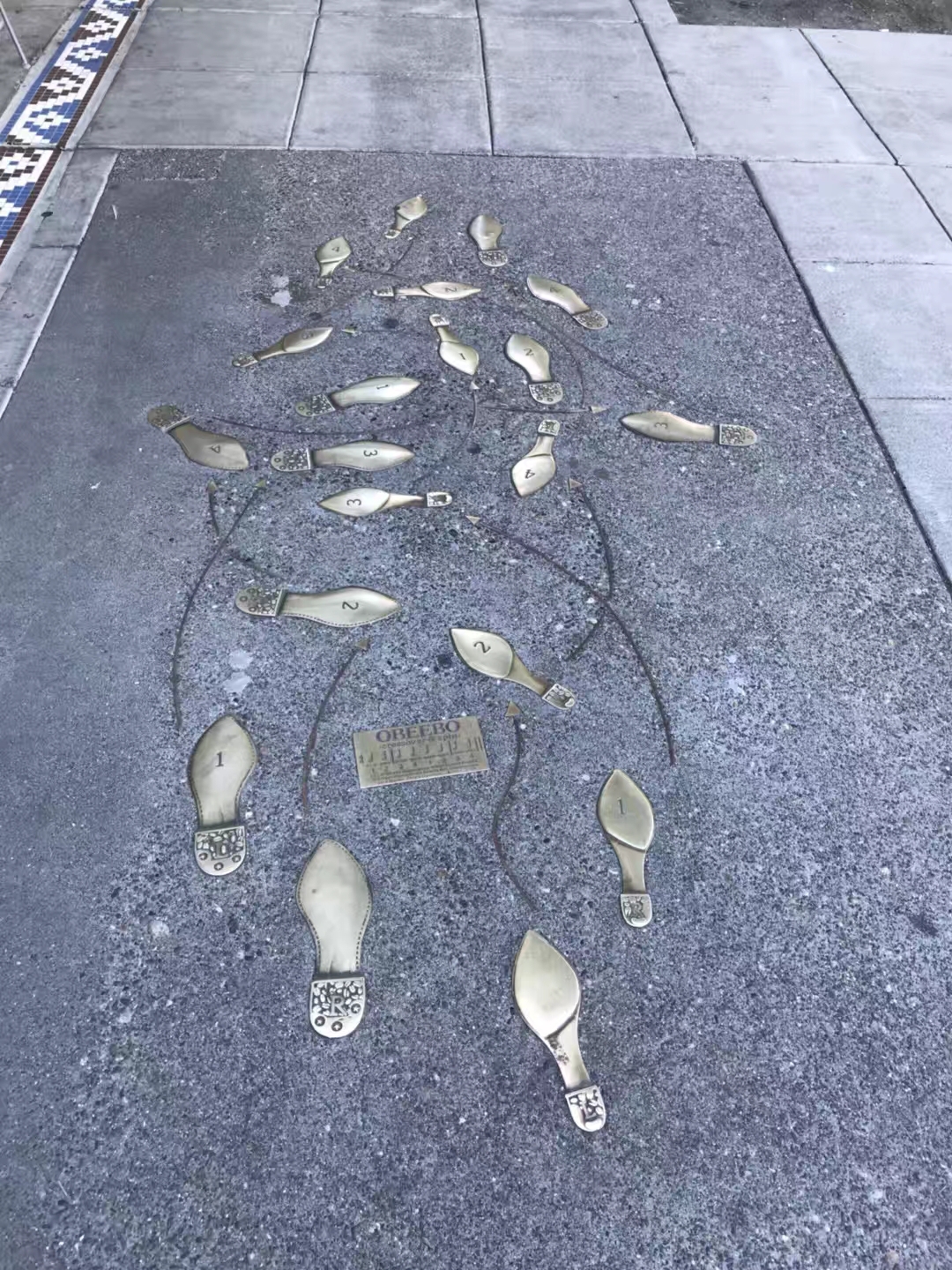 外观完那些漂亮的房子之后,沿着broadway大街往南走,千万别只顾着看风景而忽略了脚下,人行道上时不时会出现一组铜质的脚印嵌在地上,踏上去跟着符号就能学会不同的舞步,虽然没有音乐伴奏,自行脑补在大街上踩着舞步旋转也是蛮好玩的。