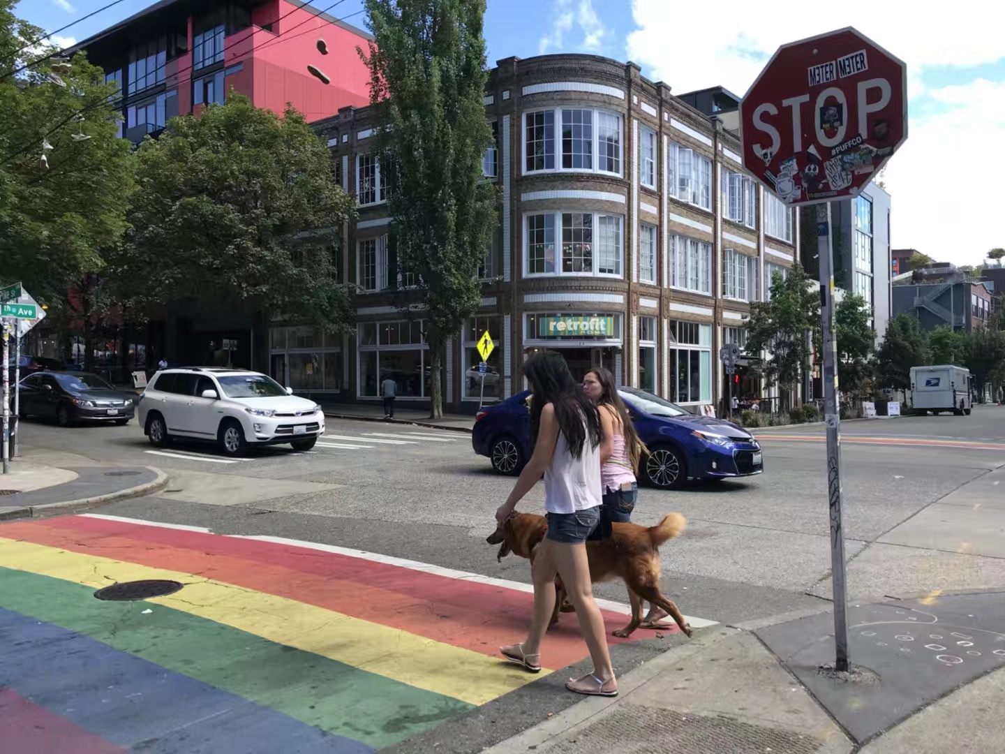 Capitol Hill的南部是一个被形容为“波希米亚”Bohemian的典型,这里除了有高大上的星爸爸烘焙坊以外,还有众多的啤酒坊、和时髦的咖啡馆以及众多口味的餐厅。这是一个放荡不覊、带点反叛与艺术氛围浓郁的地区彩虹旗彩虹斑马线形成了独特的风景。
