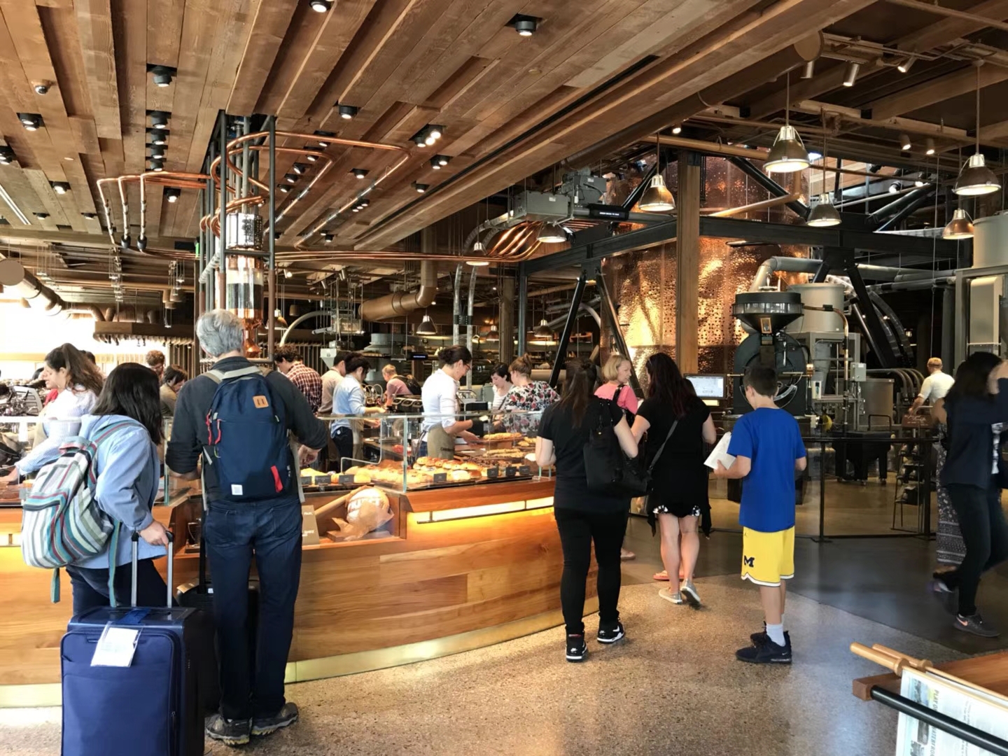 从salt &; staw出门往西走不远就能看到高大上的星爸爸烘焙中心,里面挤满了全世界各地来打卡的游客,拥挤、喧闹,唯一能引起兴趣的并不是文宣推荐的巨大的焙豆设备,反倒是啤酒柜台让人觉得有趣,难不成供应的是咖啡啤酒?