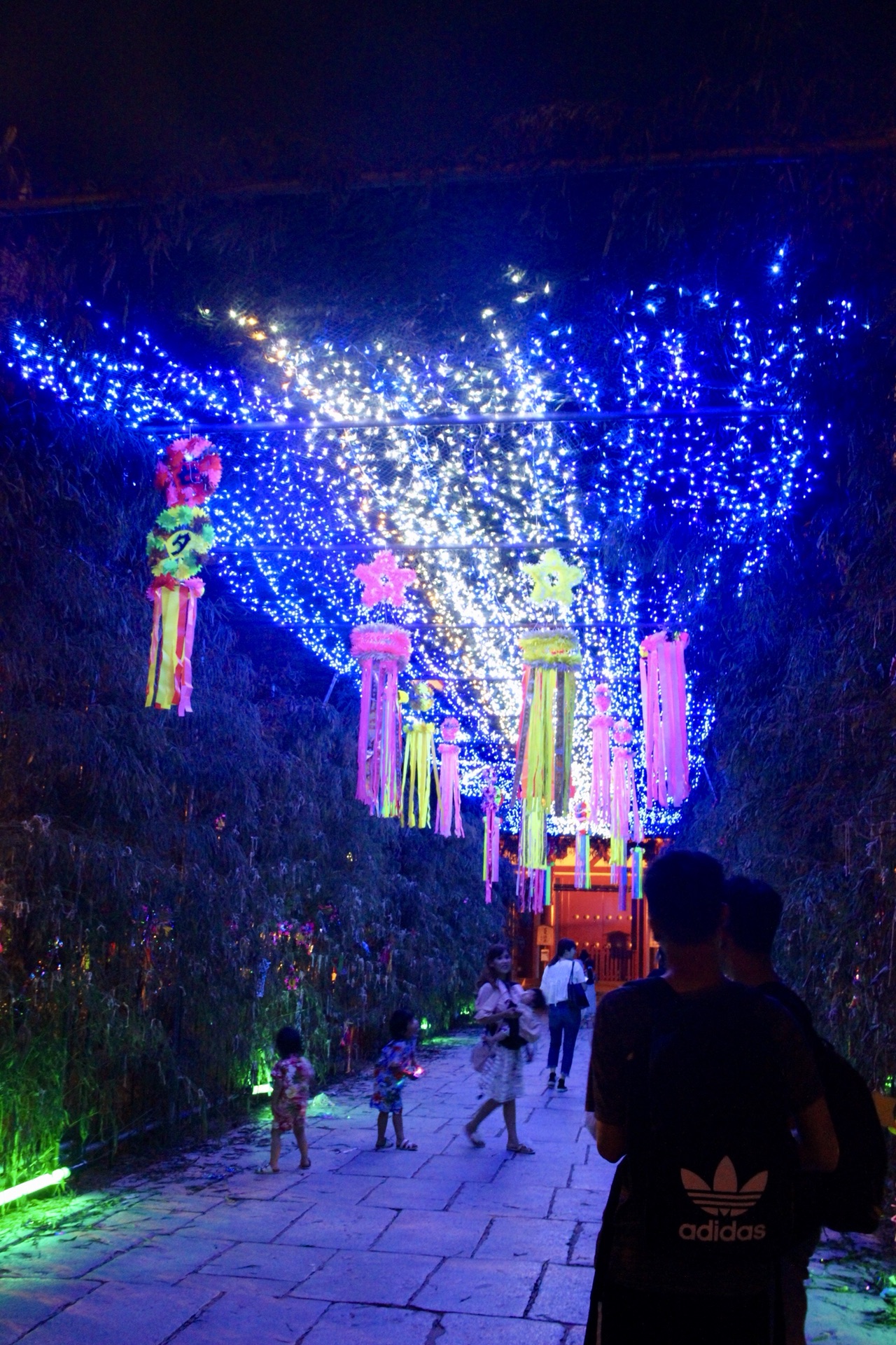 记忆中日本的景点关门都较早,当时已经快10点了,人还不算少,仔细思考,想起前一天是日本的七夕,类似于我们这里的庙会还在继续吧!