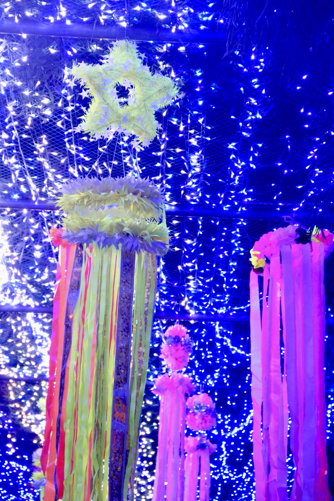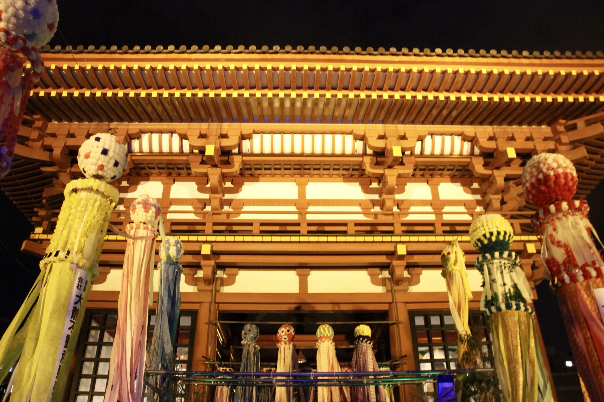 妈咪看到装挂的这些彩球悄悄问我这是什么,觉得很像我们这里灵堂上的挂饰,跟她解释了一下,应该是为七夕祭祀悬挂的东西,四天王寺的表参道一路上都有,老妈还是觉得这个东西阴森森的……
