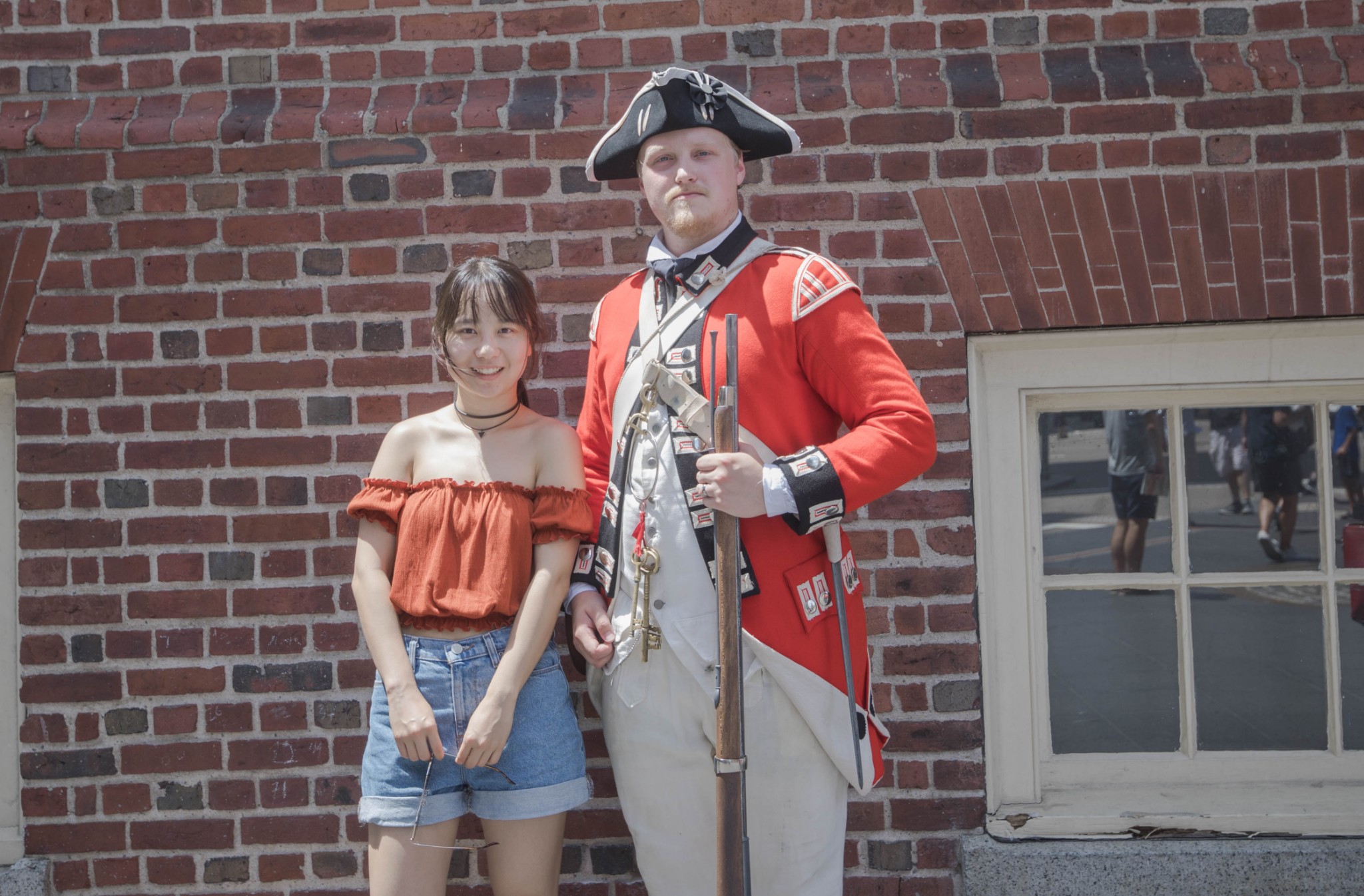 波士顿政府出钱雇佣一些人穿成这样复古的衣服,来和游客合影。标准的游客照。