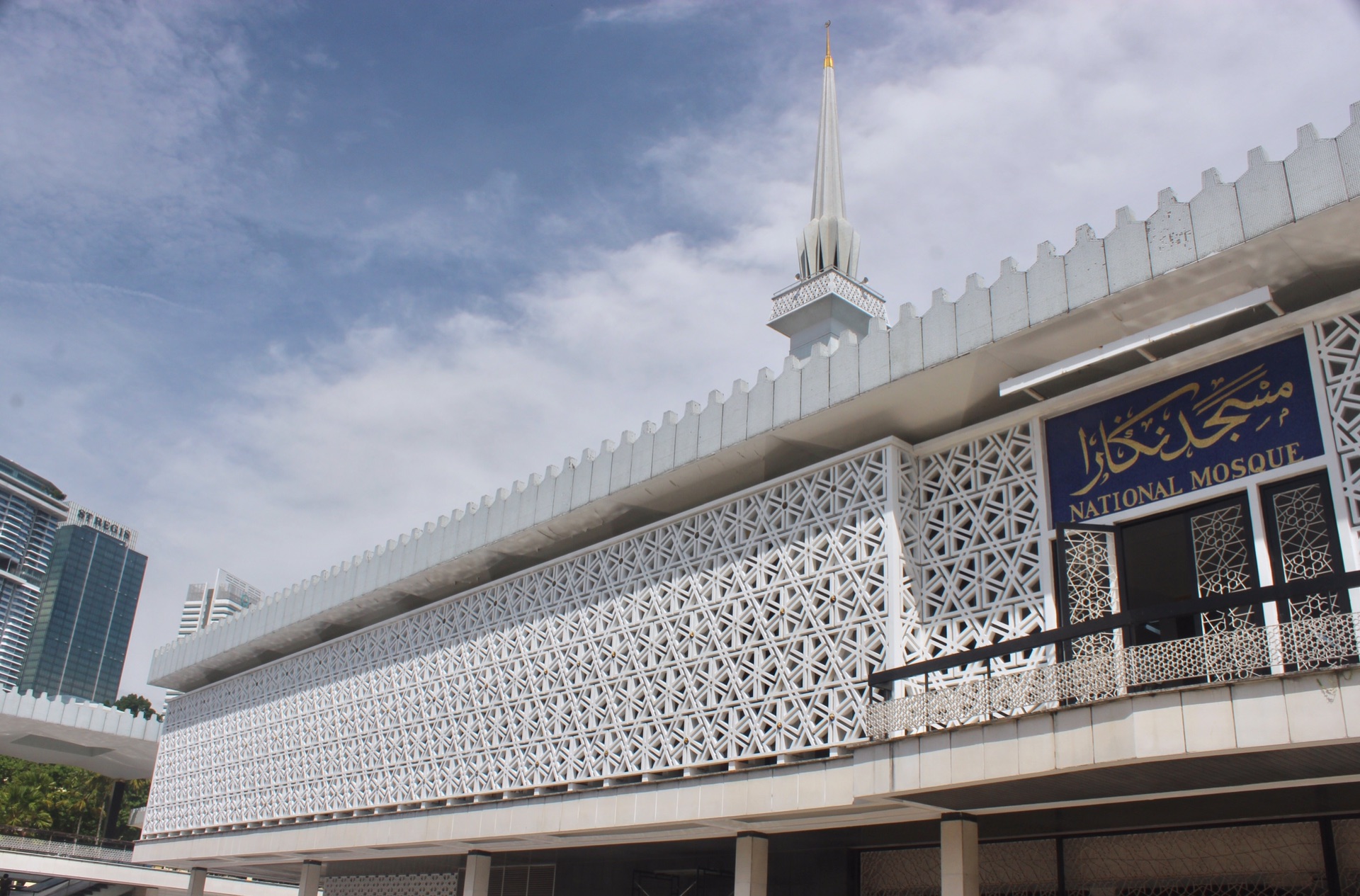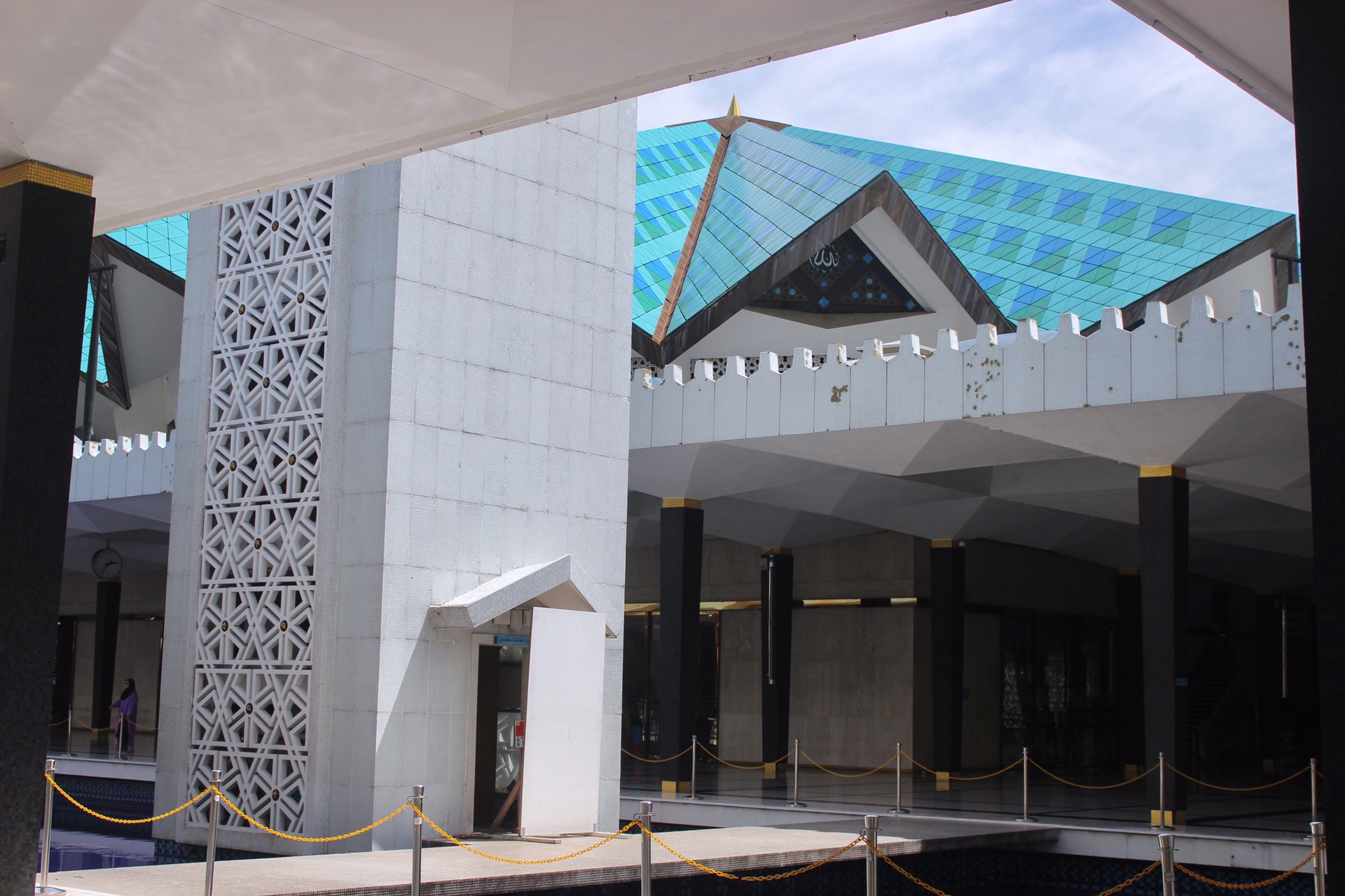 国家清真寺的外观是纯白镂空雕花 简洁又大气
