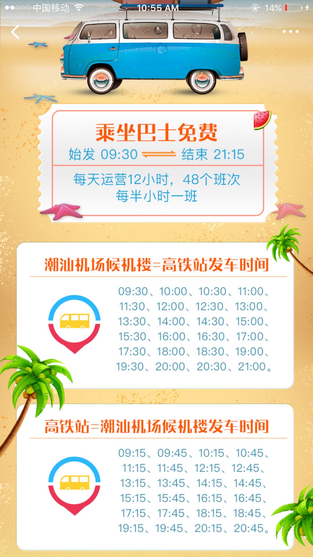 潮汕机场免费班车时刻表