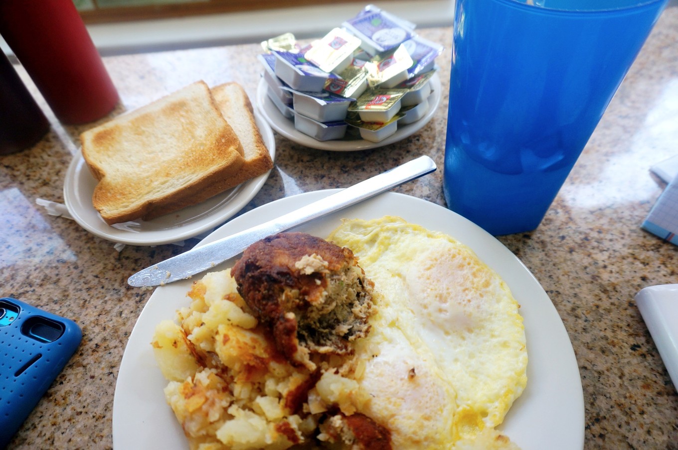 我点了crab cake和煎蛋,配菜是烤土豆泥,大概是16刀左右,量很大