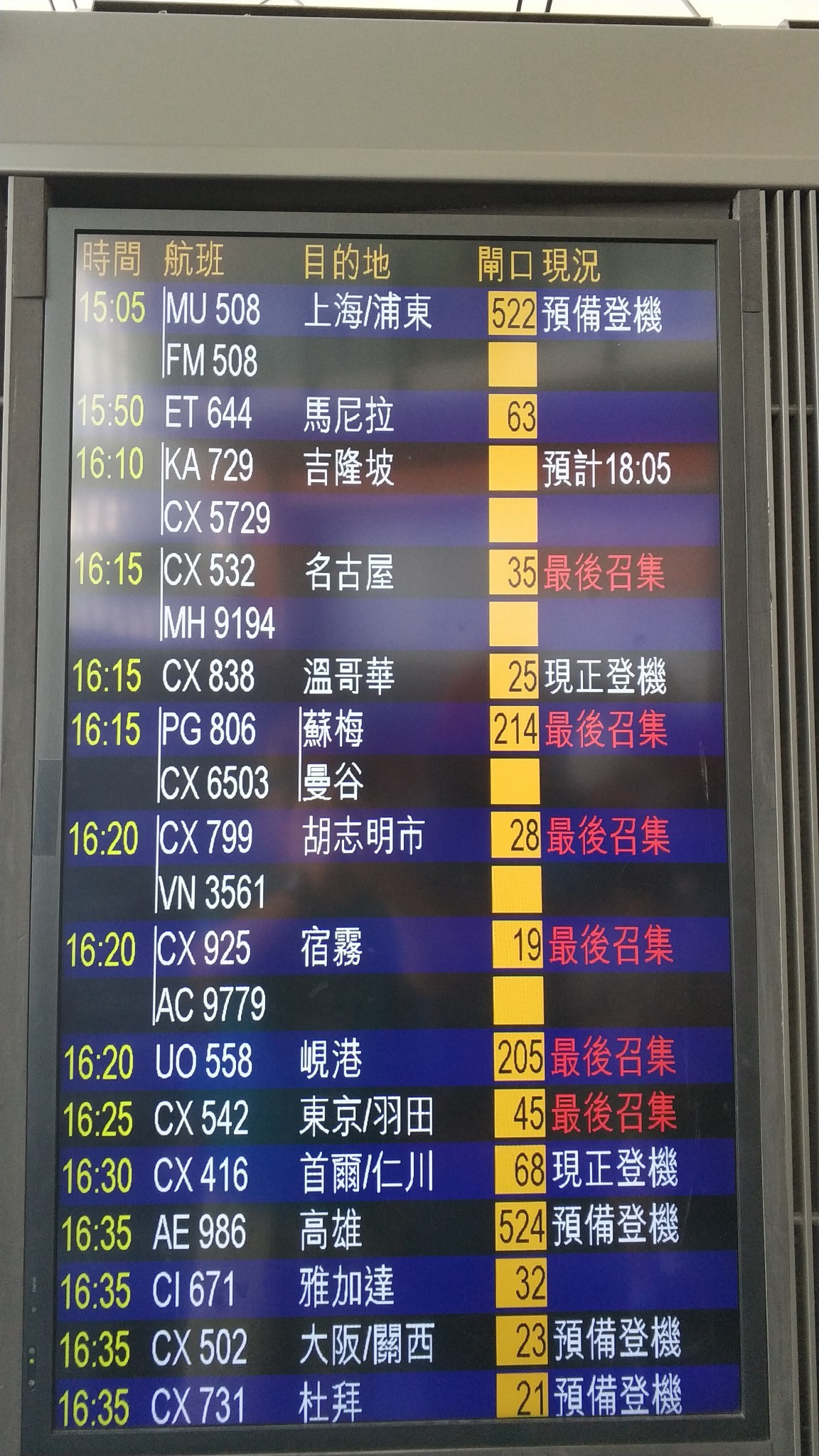 16:10 港龙KA729 延误2小时 原计划20:00到达吉隆坡被推迟到了22:00