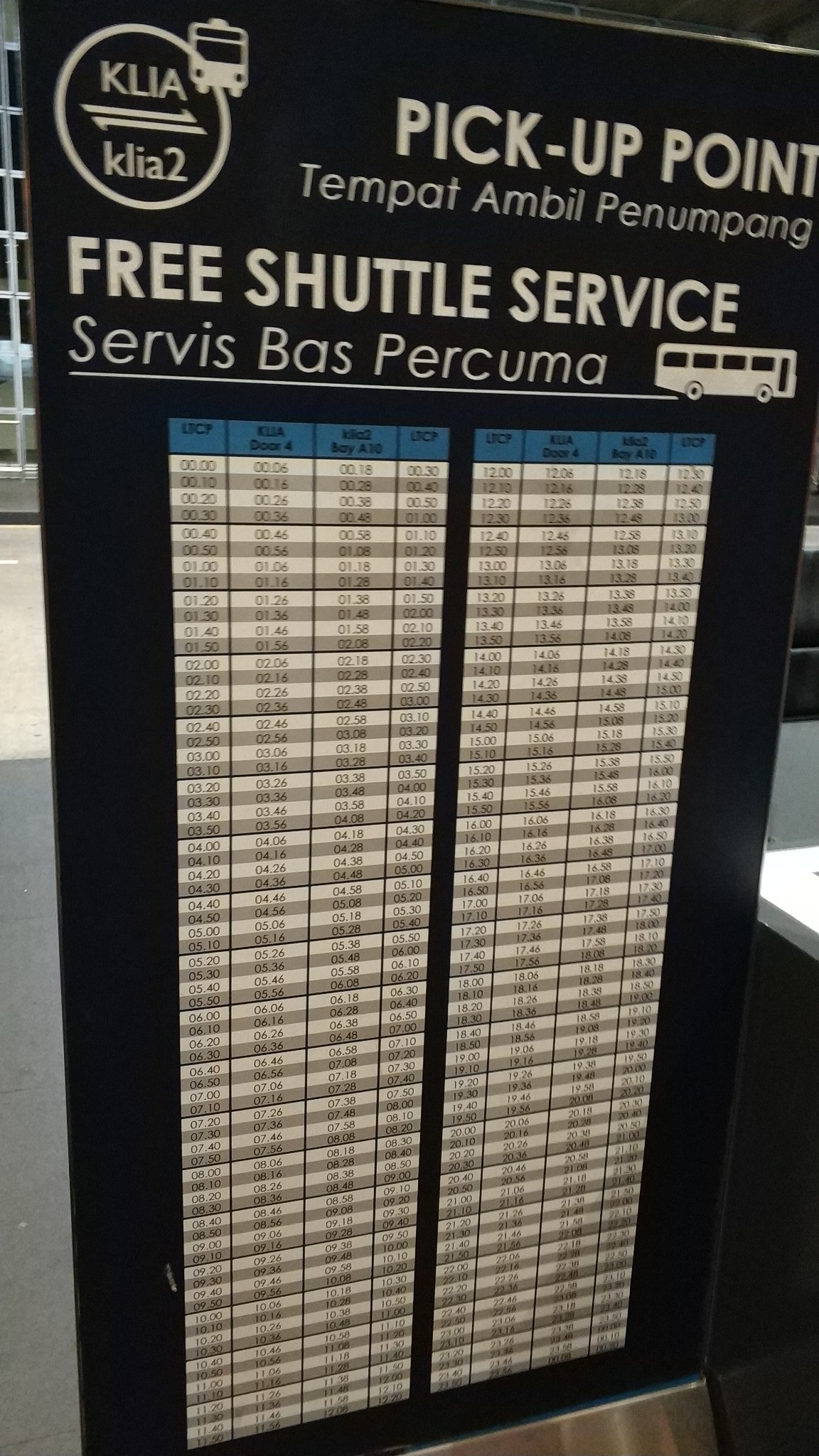 吉隆坡:机场KLIA—KLIA2之间有免费Shuttle Bus