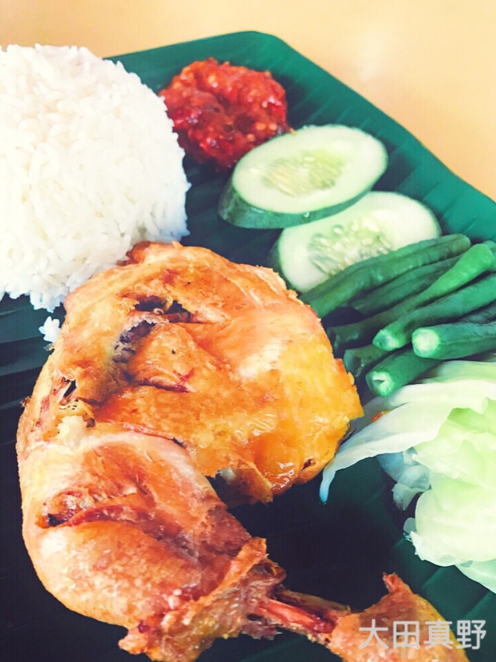 Ayam penyet,當時還沒有忌葷。菜單裡就這個看著沒吃過,沒想到是道爪哇菜。雞腿外的雞皮被炸的乾乾的,脆多酥少,味道沒有什麼特別。