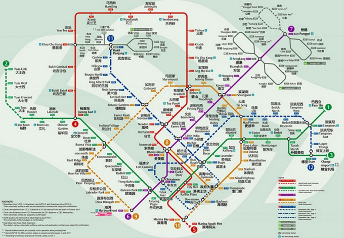 站点编号:每个车站都是有自己的编号,独一无二的(和新加坡的右边一样,每个邮编都代表一栋建筑);站点名字:新加坡有很多站点是以某个HDB大牌号来命名的,所以坐车到某个居住区域看来看去都差不多,很难找到一个很标志性的建筑(除非市政大厦、金沙一带)。