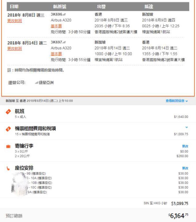 因为高峰出行深圳往返新加坡的机票保持在2000+,有毗邻香港优势的我们选择了捷星航空香港往返新加坡。往返机票+深圳往返香港机场的车费人均1250RMB.