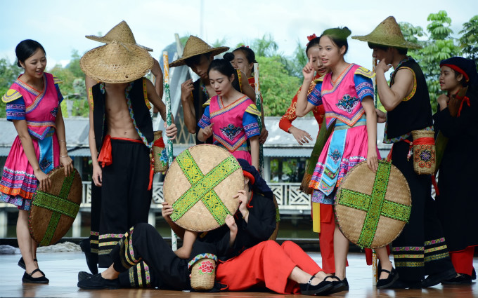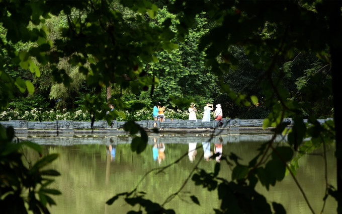 这里翠竹绕岸,农舍点缀,独木桥横,稻穗摇曳,农夫荷锄,牧童戏水,风光俊朗清逸,极富南国田园气息。