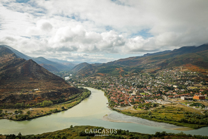 圣十字修道院外,俯瞰Mtkvari与Aragvi两河交汇处的秋色