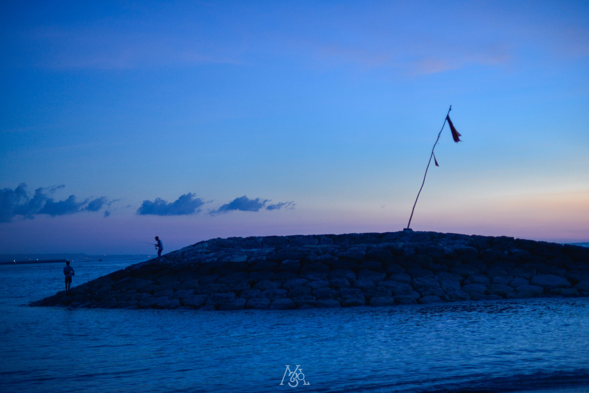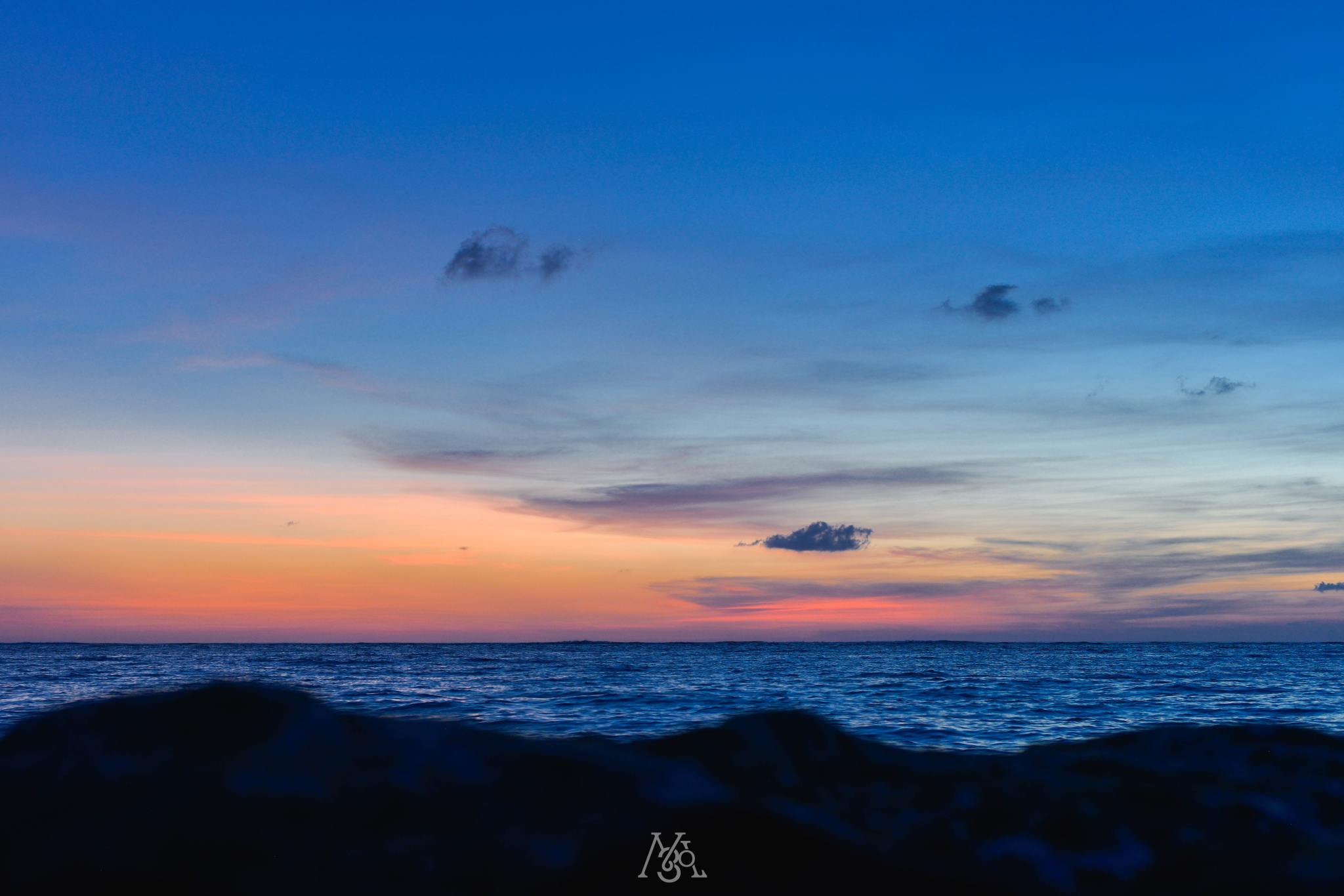 开阔的海岸线绵延不绝,橙色的阳光慢慢被从沙滩上剥离,只留下远处的金黄色小点。