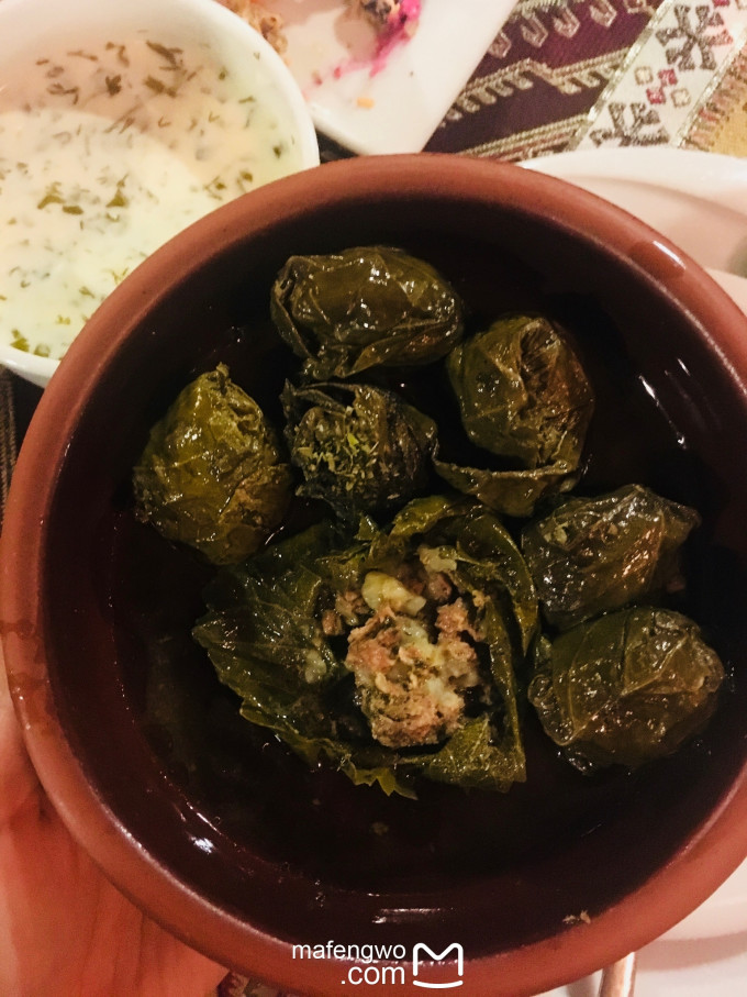 用一种叶子包裹的肉圆 是连着叶子一起吃的 那肉是夹杂着羊肉牛肉的膻味 一种叫做阿拉伯的味道 你明白吗
