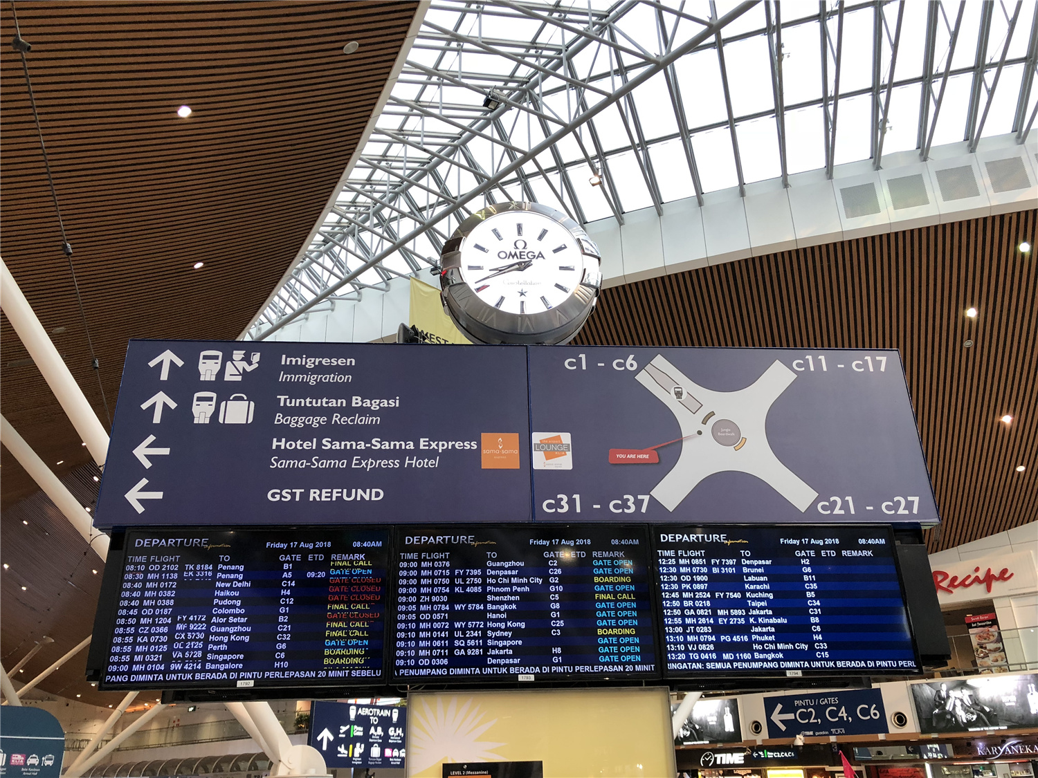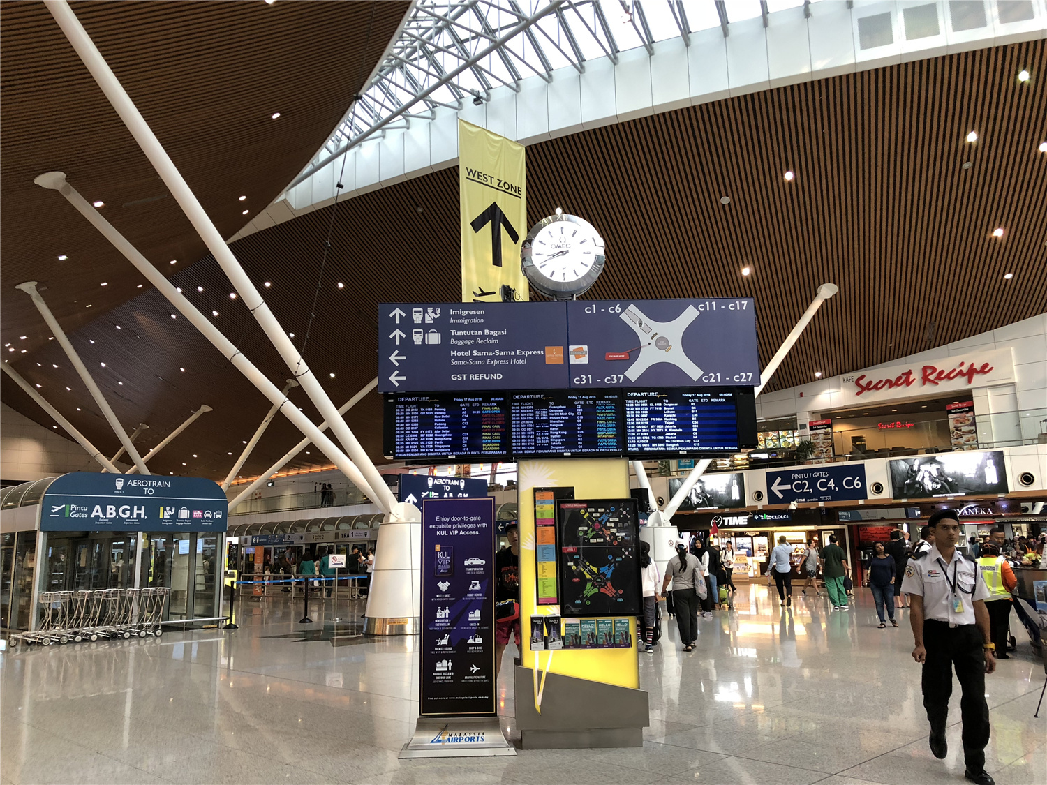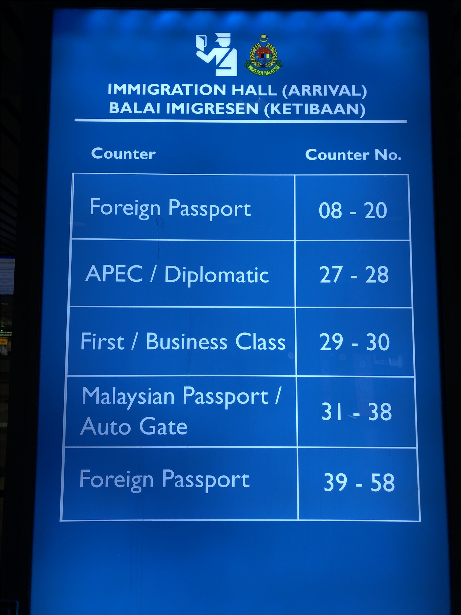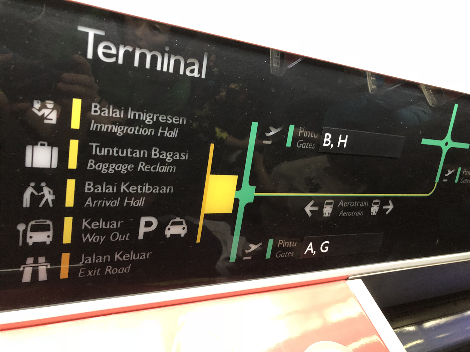 经过6个小时飞行到了吉隆坡机场。出机场后跟着行李提取和移民标志的指示牌一直走