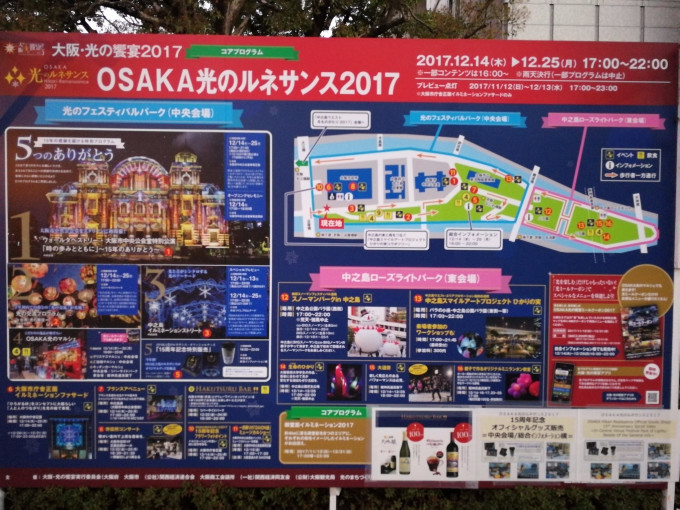在桥头有大阪光之盛宴的介绍图,正好到这天是活动最后一天,决定到了晚上过来看看~