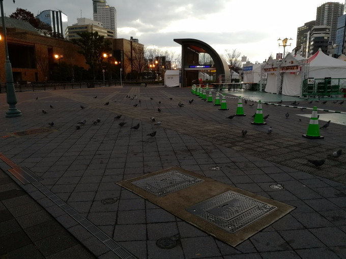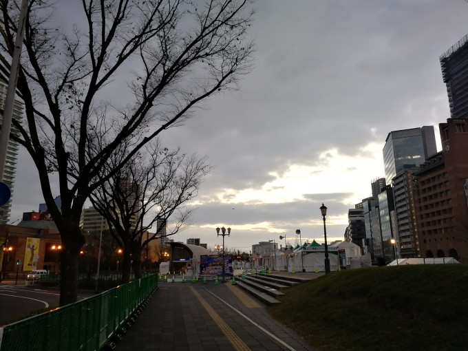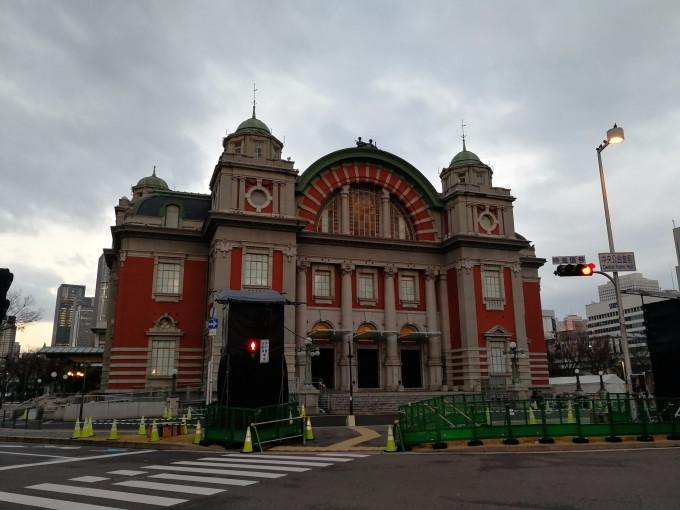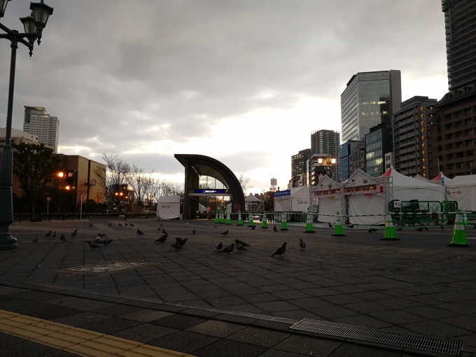 第一站想去朝圣一下,去我挚爱的乌鸦团(乐队GARNET CROW 江湖人称由利哥和他的朋友们 )五周年开演唱会的地方看看~坐地铁到淀屋桥站下车,出门便看到了如此美景-冬天大阪清晨的朝阳~